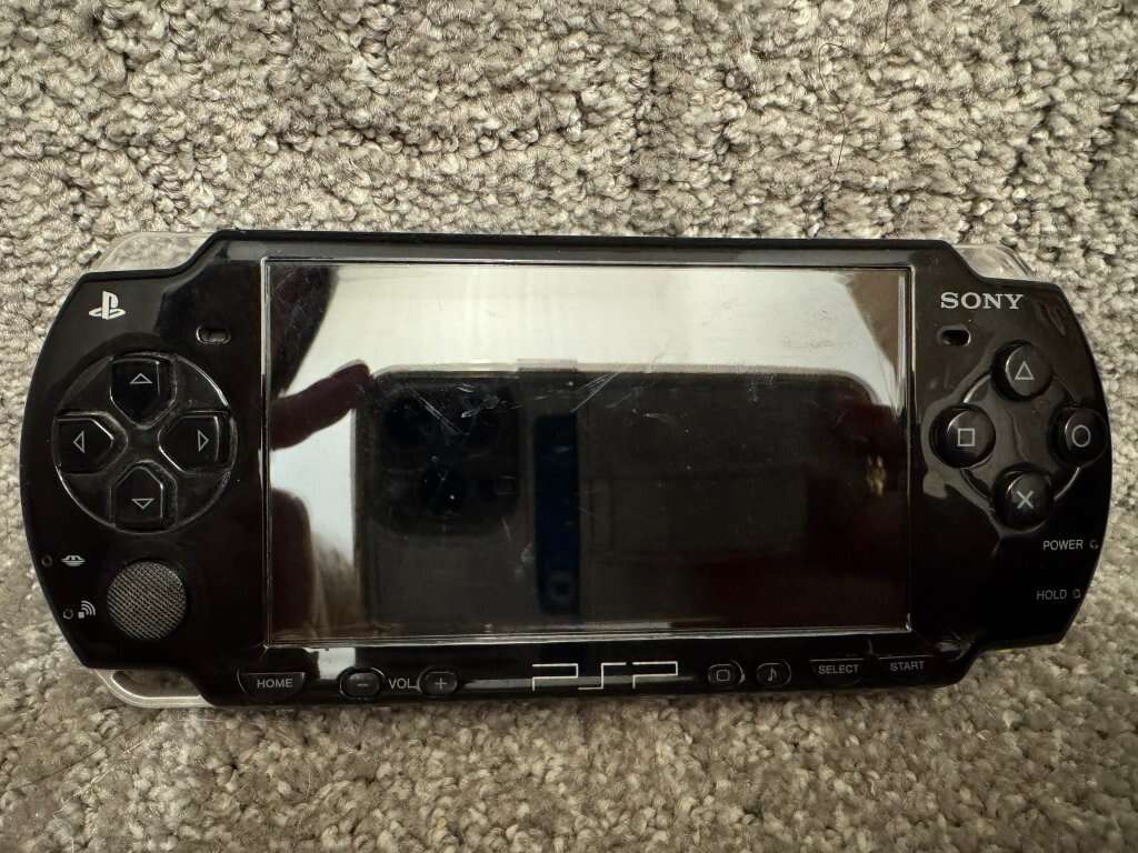 psp with 14 games and 4 movies (games) god of war, grand theft auto,monster jam,tony hawk project 8,ace combat X, socom fireteam bravo 2, pursuit force,shaun white snowboarding,patapon,medal of honor heroes, the simpsons, worms warfare 2, pinball hall of fame, mortal combat unchained, (movies) young guns, jarhead, casino royal, superbad all works well. well cared for never dropped.