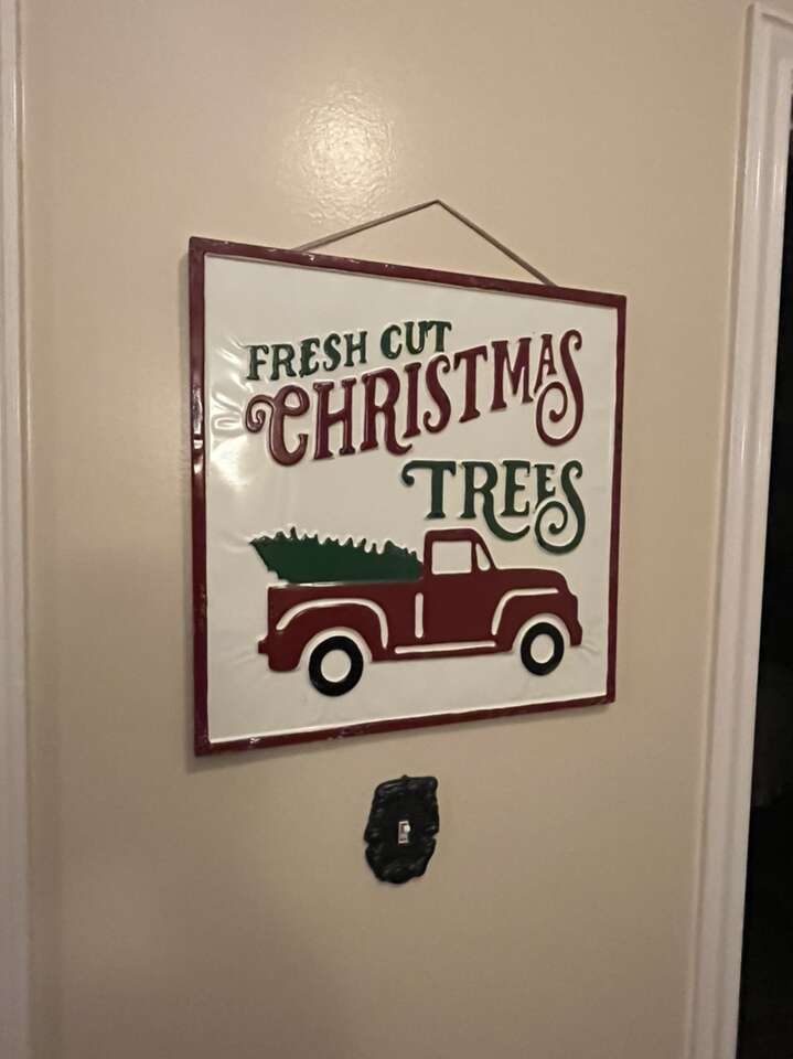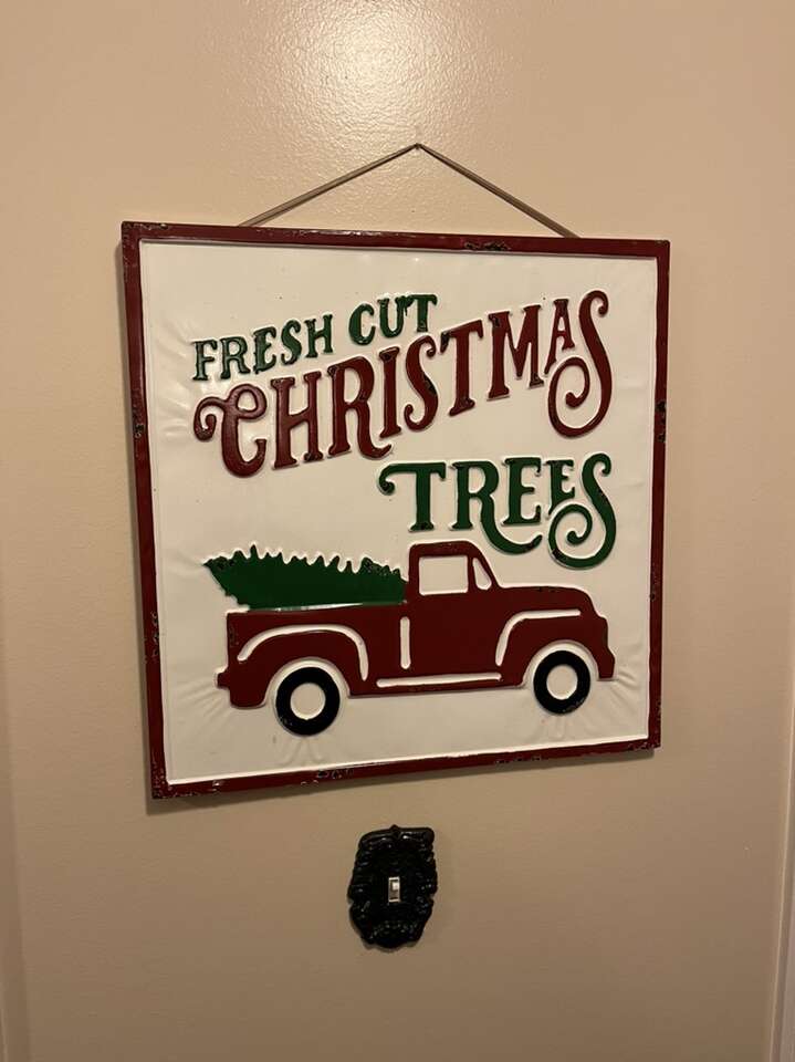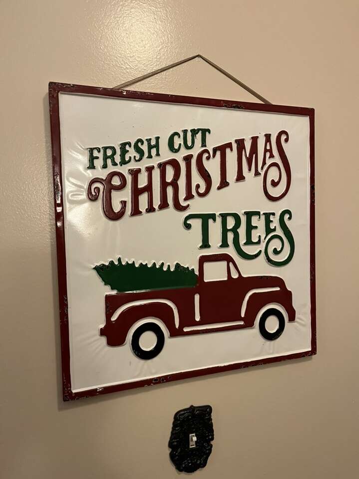Large all metal fresh Christmas trees sign 19 X 19 square