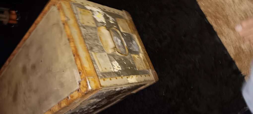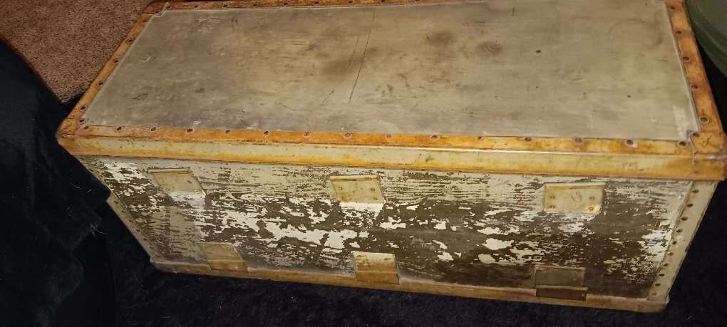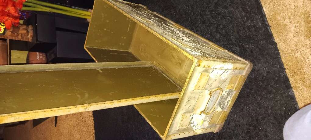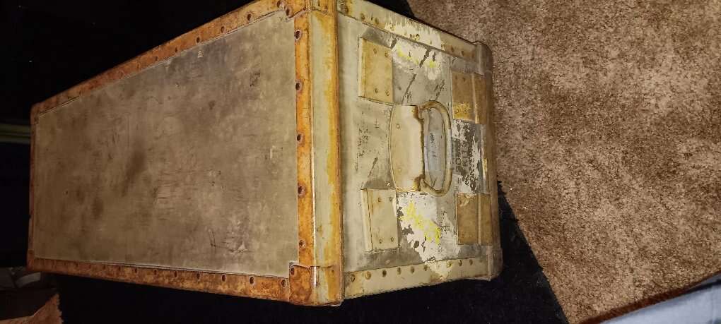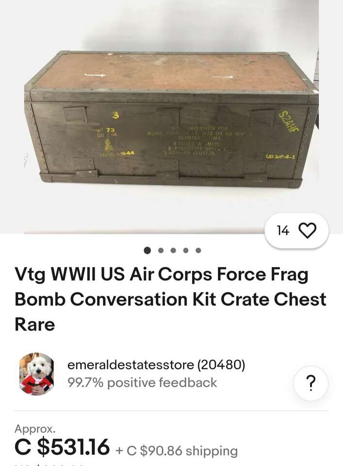 This is a really cool piece, worn perfectly. has a nice patina, made of wood and metal, says Fragile , bomb conversion kit. cash only no trades. very hard to find