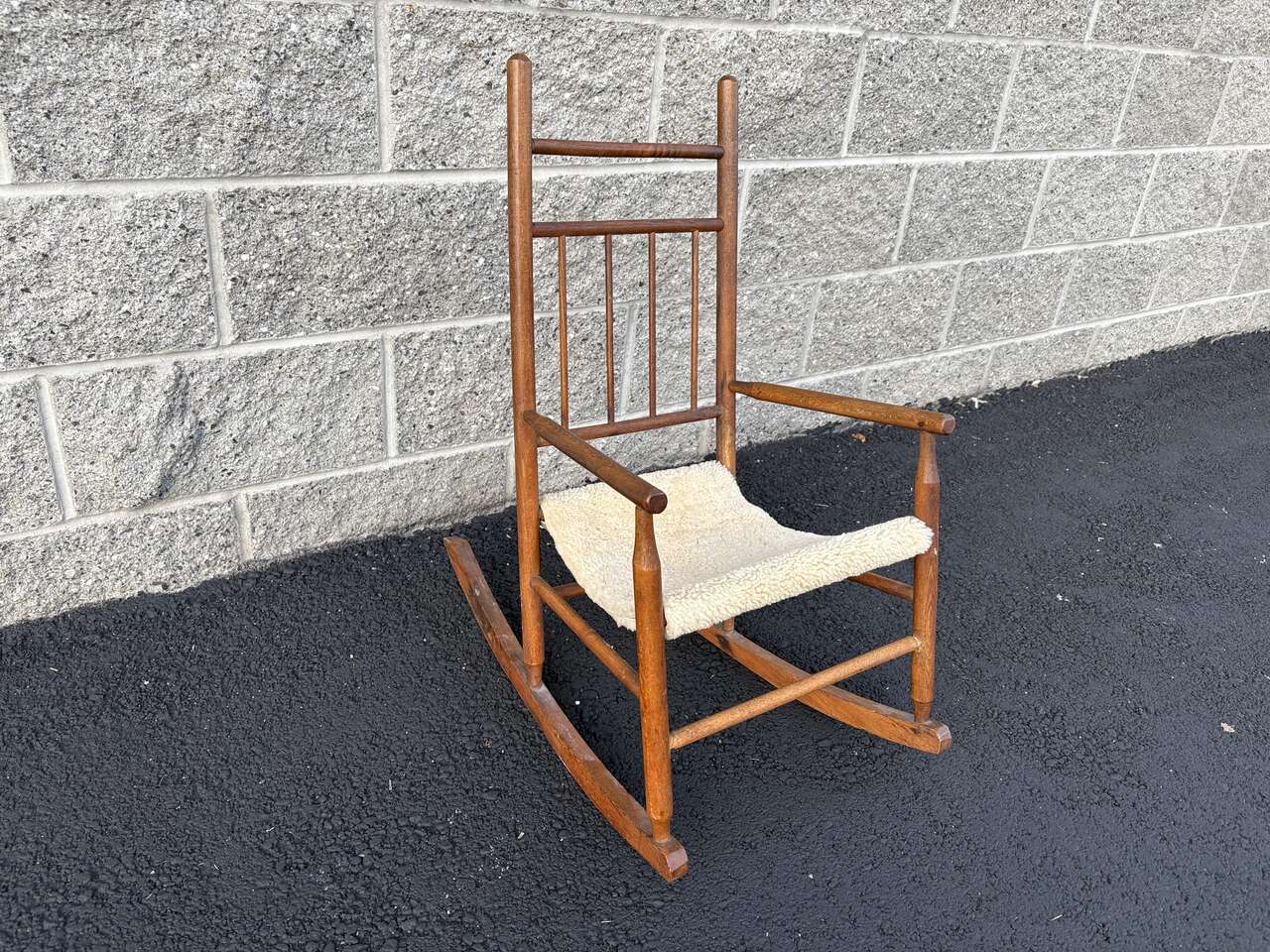 VenmoAdorable, antique kids rocking chair. Vintage All of the wood is in great shape- just needs wood glue in the joints to stiffen up the frame Dimensions: 16.5" arm height x 12" seat height x 24.5" deep x 27"tall x 15" wide