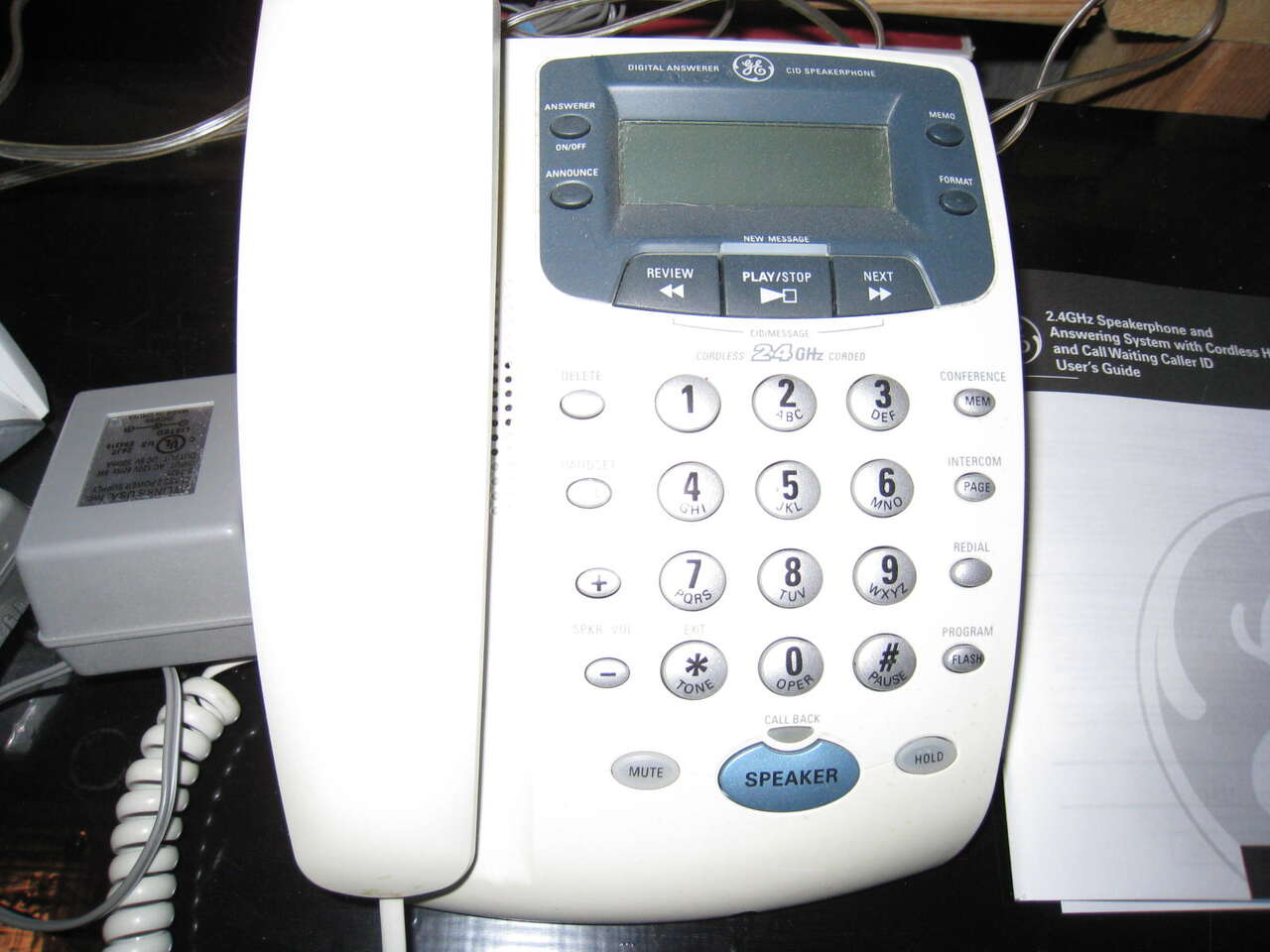 2.4-GHz speakerphone and answering system (Model 27959GE1-A) with chordless handset (Model 5-2668), call waiting and caller ID with user's guide. Everything works.