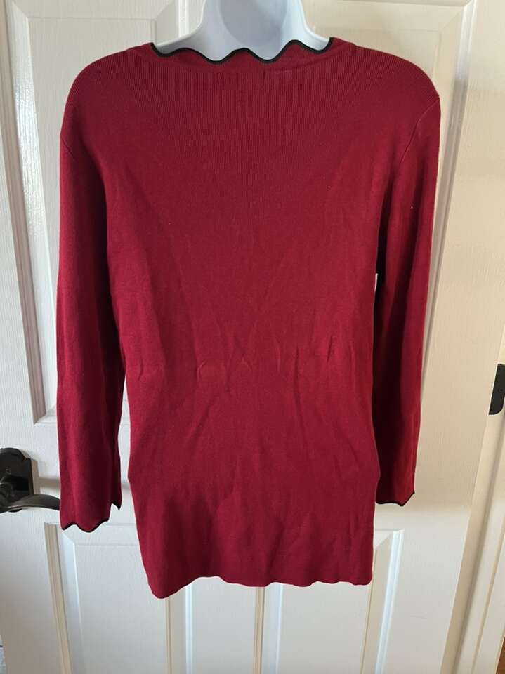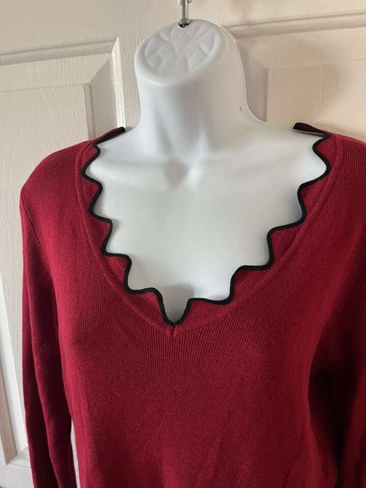 Roz & Ali red scallop neck sweater size M black trim