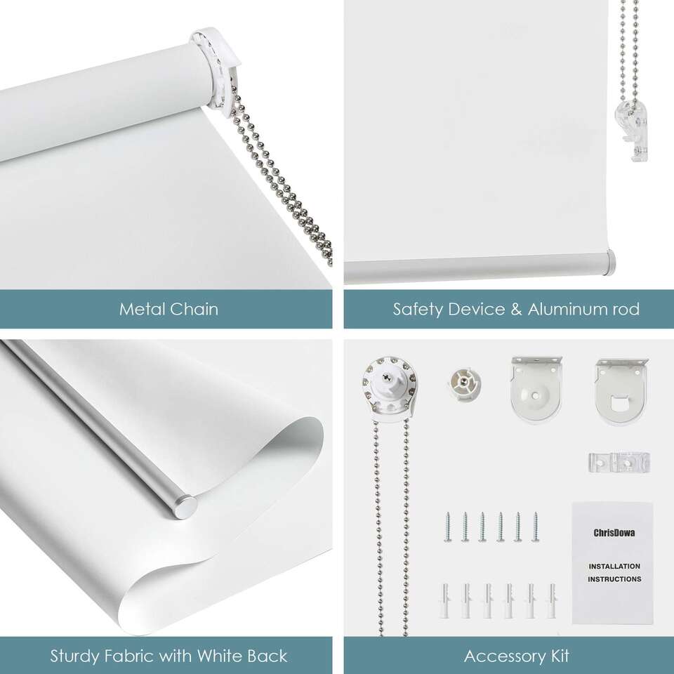 ChrisDowa 100% Blackout Roller Shade, Window Blind with Thermal Insulated, UV Protection Fabric