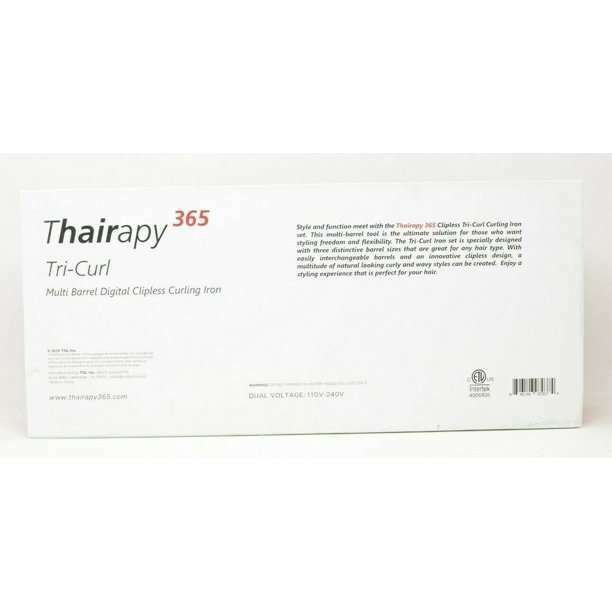 We have one Thairapy 365 UNT C6 Tri-Curl Digital Clipless Curling Iron 1656539 #86607 available. This curling iron has been Lighty Used and comes in the original box. We have inspected and tested this unit to make sure that it is in good working condition.