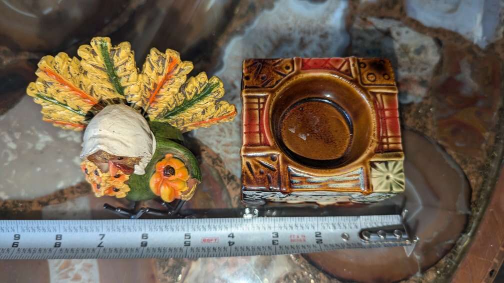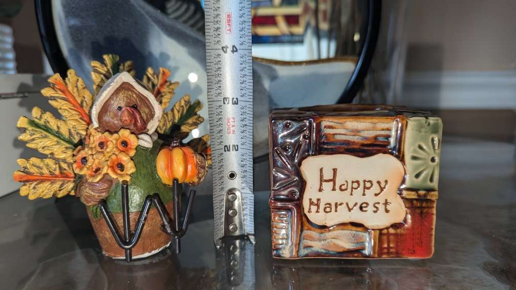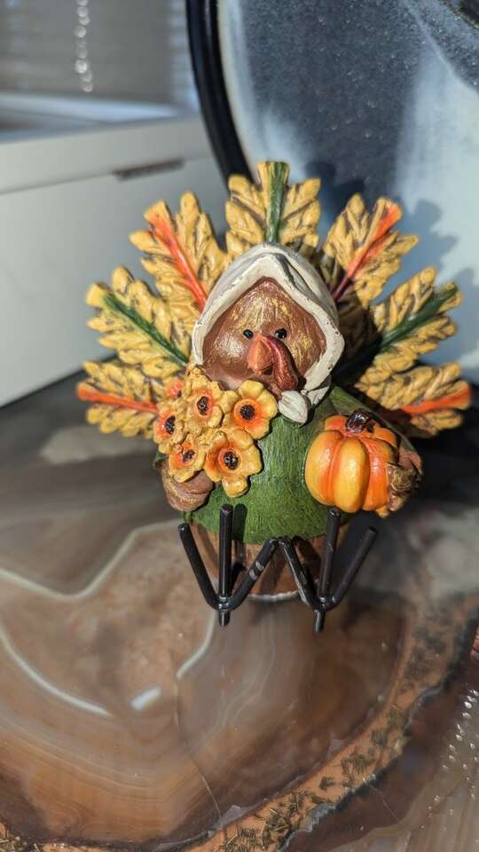ZelleSet of Thanksgiving Decorations, Turkey and a candle holder.