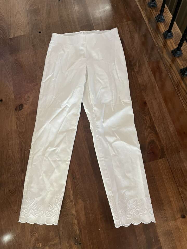 Women’s Elle brand pants size S white embroidered 26” inseam