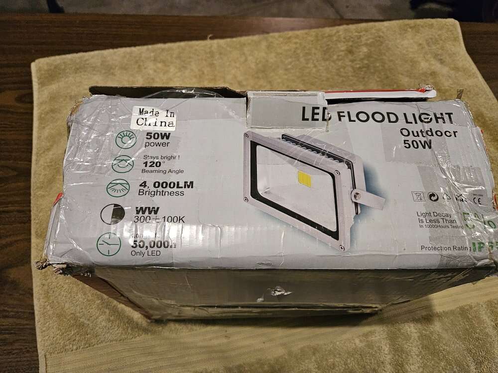 This is a 50 Watt LED outdoor flood light, in new condition. box has damage but light is new. Asking $10 OBO, cash or venmo only. Can deliver to Ogden area if needed. Text is best, serious inquiries only. If the ad is up it is still available, will not respond to generic availability messages.