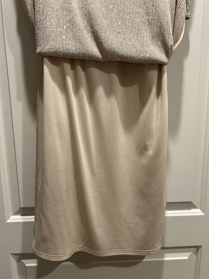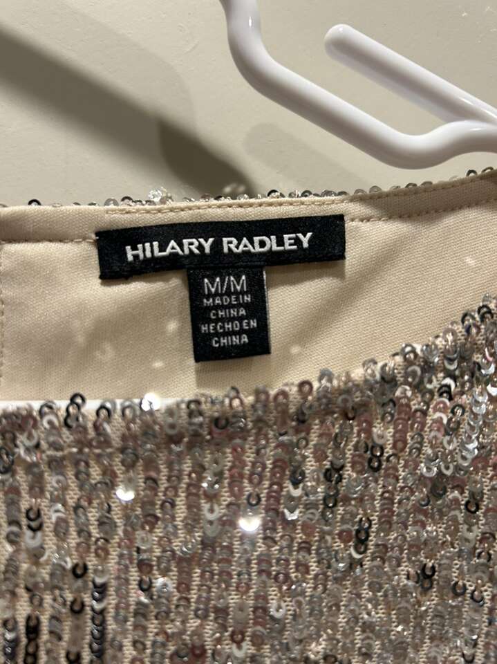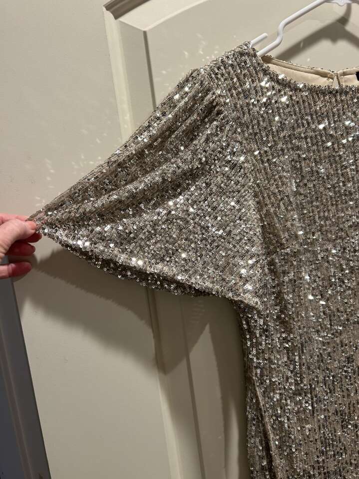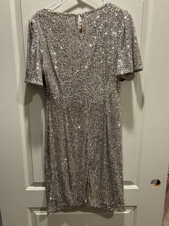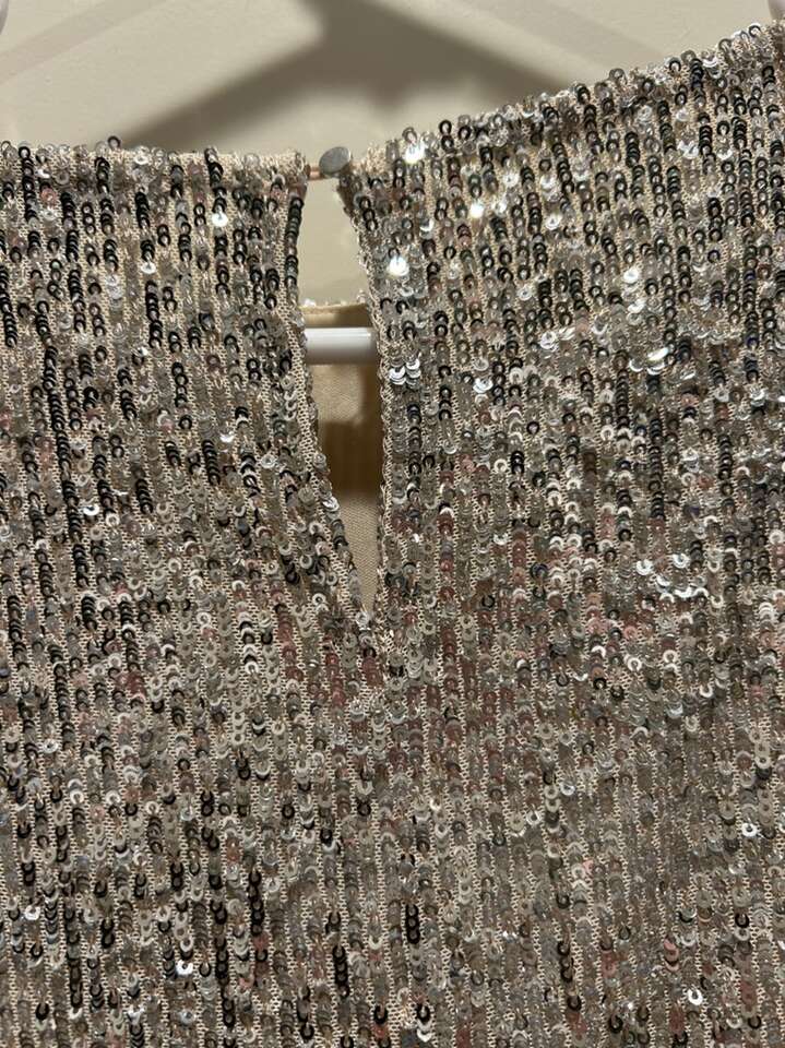 VenmoWomen’s size medium, special occasion holiday Christmas party New Year’s Eve sequin dress. Hilary Radley brand. Scoop neck with flutter sleeve. Lightweight and fully lined. Great quality dress. Modest. Not hot or restricting to move in. In like new condition. Beautiful gold champagne sequence. Women’s size medium. Clean smoke free home. Porch pick up from Alpine.