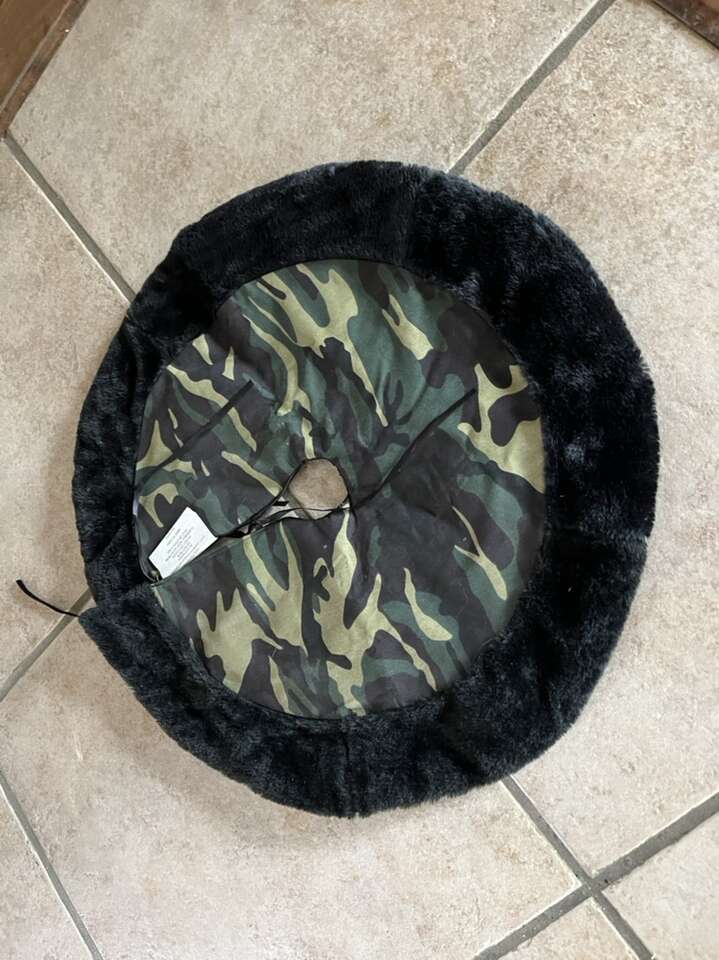 Small Christmas tree skirt camouflage green colored 20”