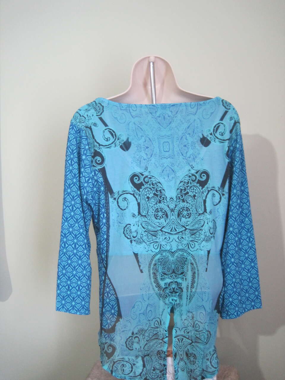 Add a touch of elegance to your wardrobe with this Live And Let Live long sleeve shirt. The shirt features a beautiful paisley print in blue and black, perfect for any occasion from travel to business. The shirt is made of lightweight polyester and spandex material, making it comfortable for casual or round neck wear. The shirt is machine washable and fits regular size, with a pullover closure for easy wear. Perfect for winter, fall, or spring, this shirt is a must-have for any fashion-conscious woman.