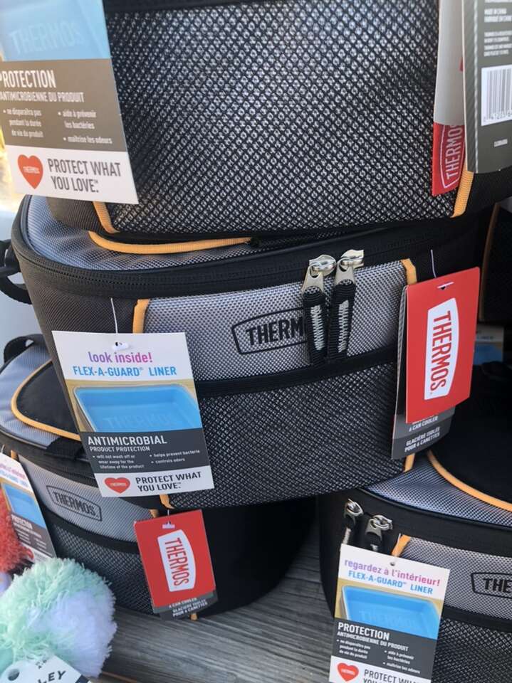 Small red - $4 ABC red - $6 Black and orange thermos - $10 (these are the size that fit a 6 pack of sodas)