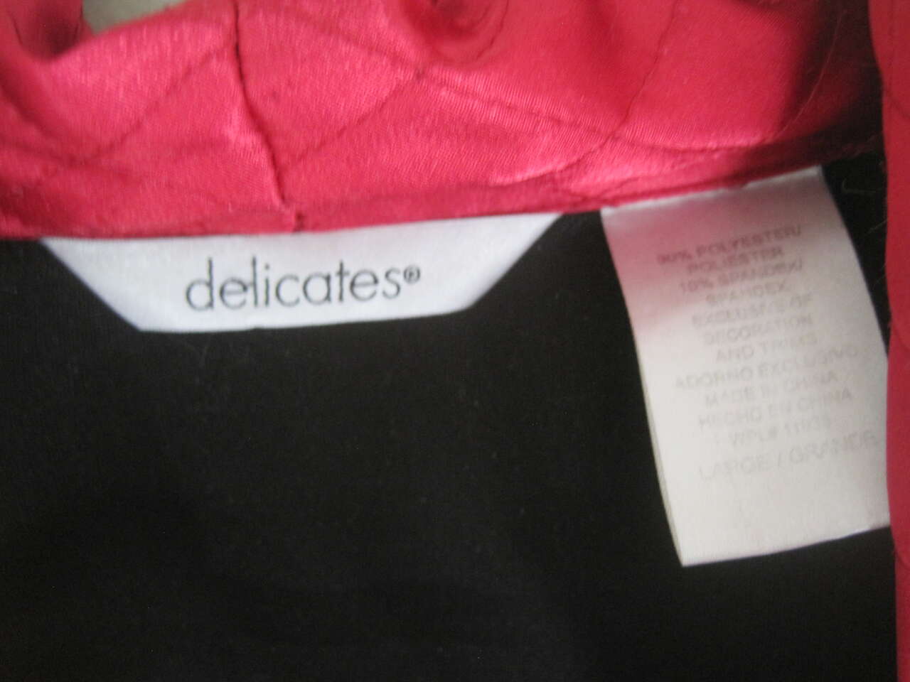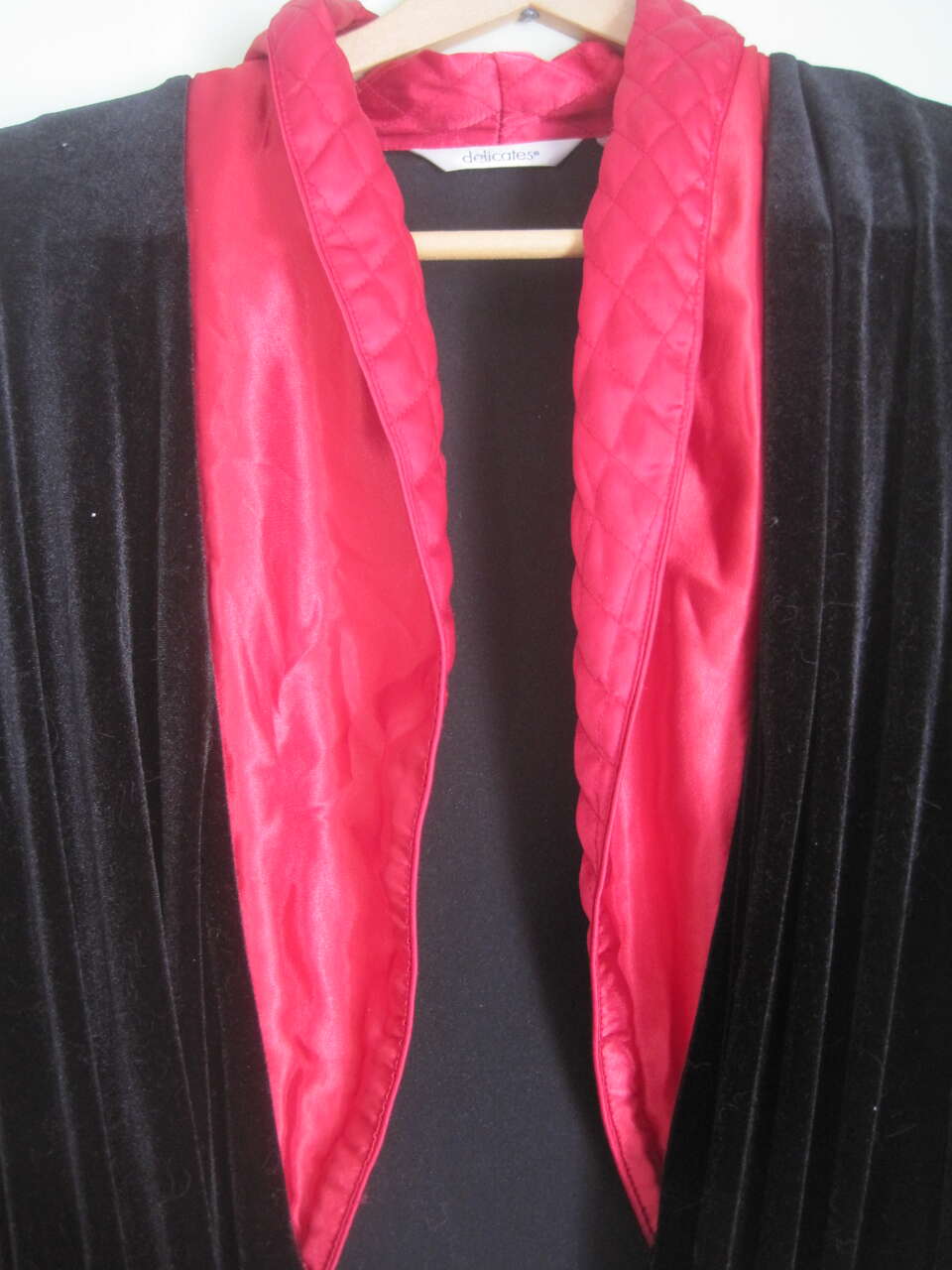 Indulge in luxurious comfort with this stunning Delicates satin robe, perfect for the holiday season. The black fabric is beautifully complemented by the red trim, adding a touch of elegance to your loungewear collection. The 3/4 sleeves and V-neckline provide a flattering fit, while the tie closure and belted waist create a stylish and comfortable look. Crafted from a blend of polyester and spandex, this robe is machine washable and easy to care for. The quilted trim accents and satin fabric type add a touch of sophistication, making it the perfect addition to any wardrobe. Whether you're treating yourself or looking for a thoughtful gift, this Delicates robe is sure to impress.