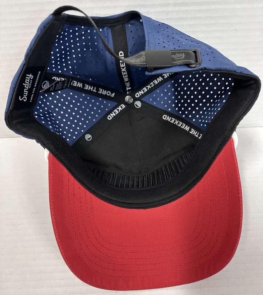 This classic golf hat from Sunday Golf is the perfect addition to any golfer's wardrobe. With its adjustable design, breathable fabric, and stylish red and blue color scheme, this hat is both functional and fashionable. Whether you're a seasoned pro or just starting out, this hat is sure to help you perform your best on the course.