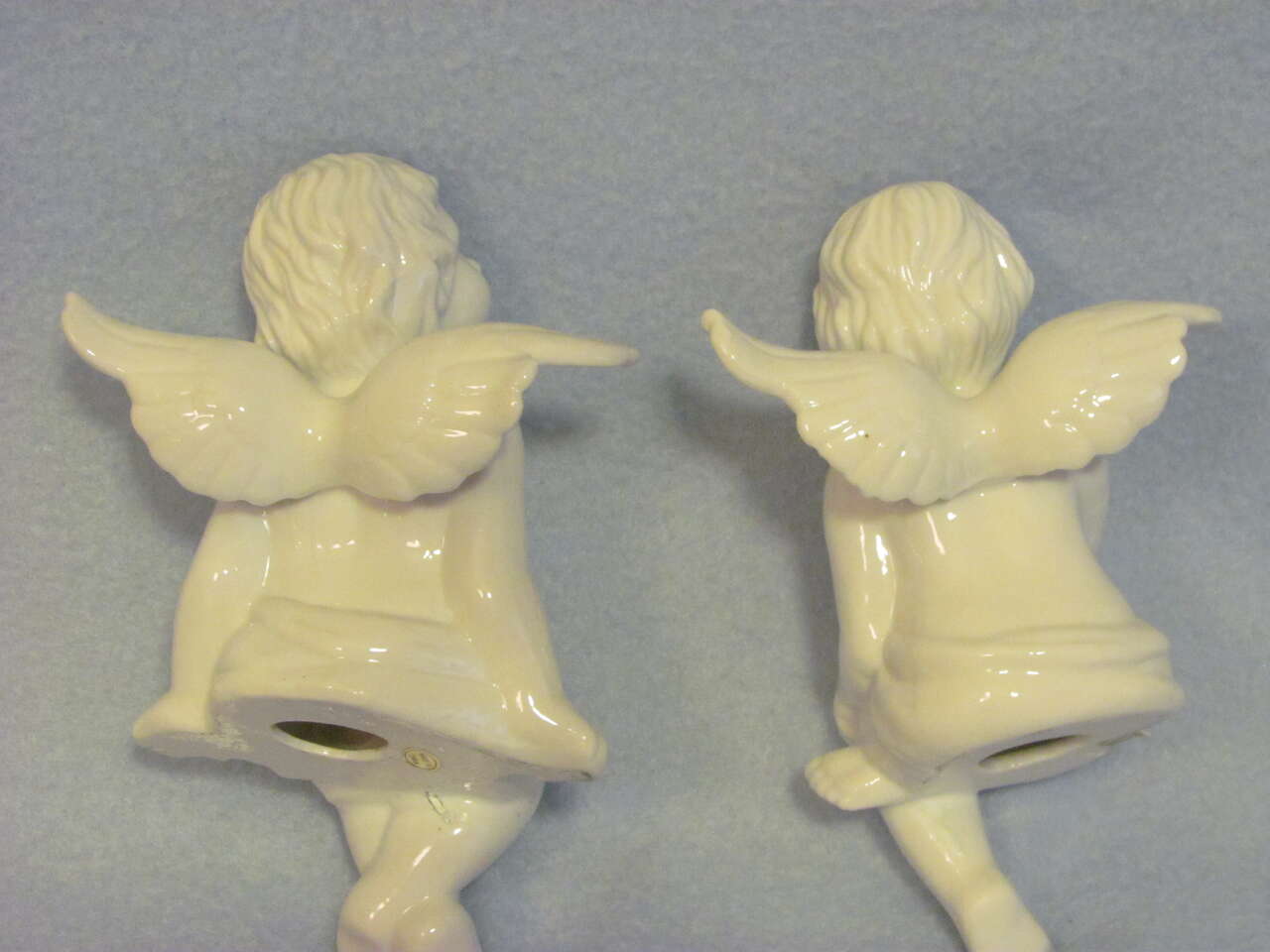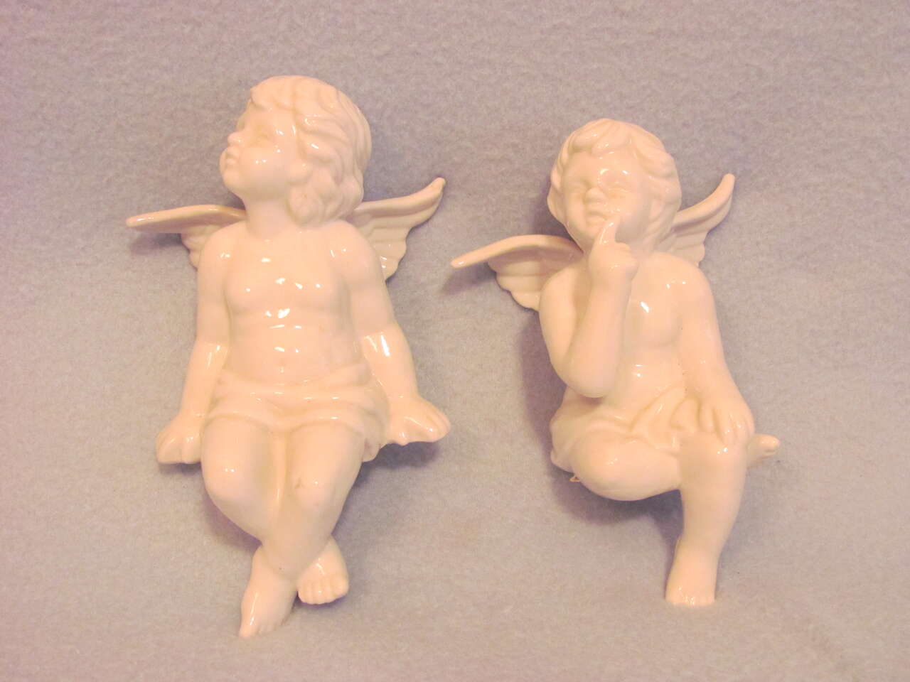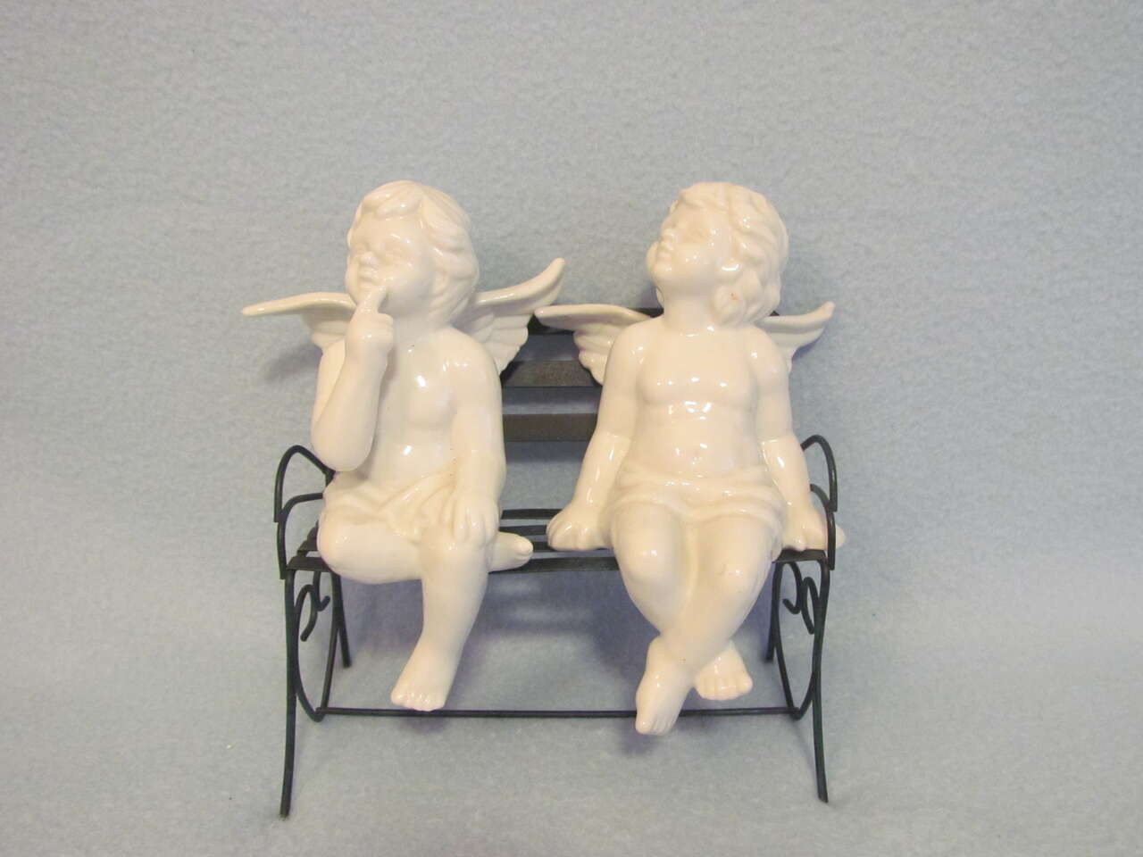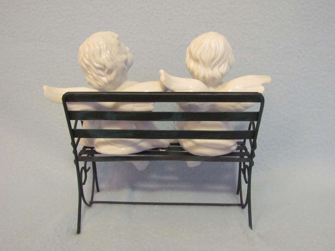 $10 Two Porcelain Angels Sitting on a Metal Bench (Angels measure approximately 4.5" W x 6.5" H x 4" D; the bench measures approximately 7.5" W x 6" H x 4" D)