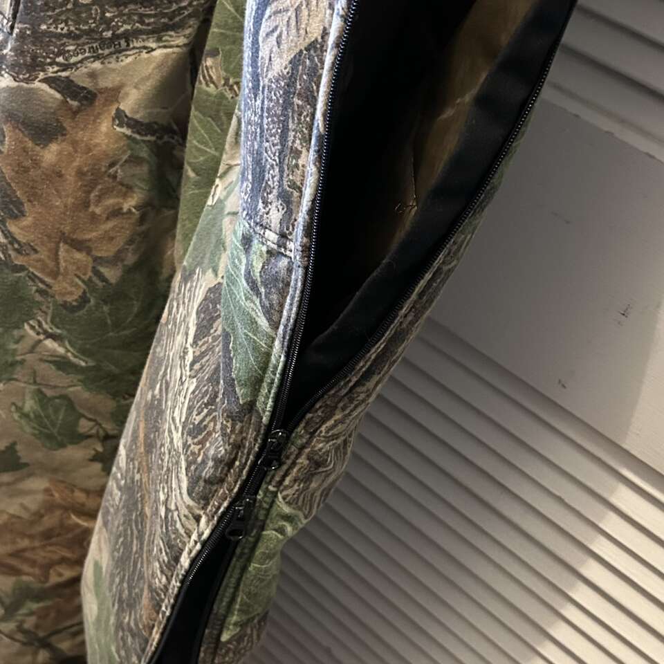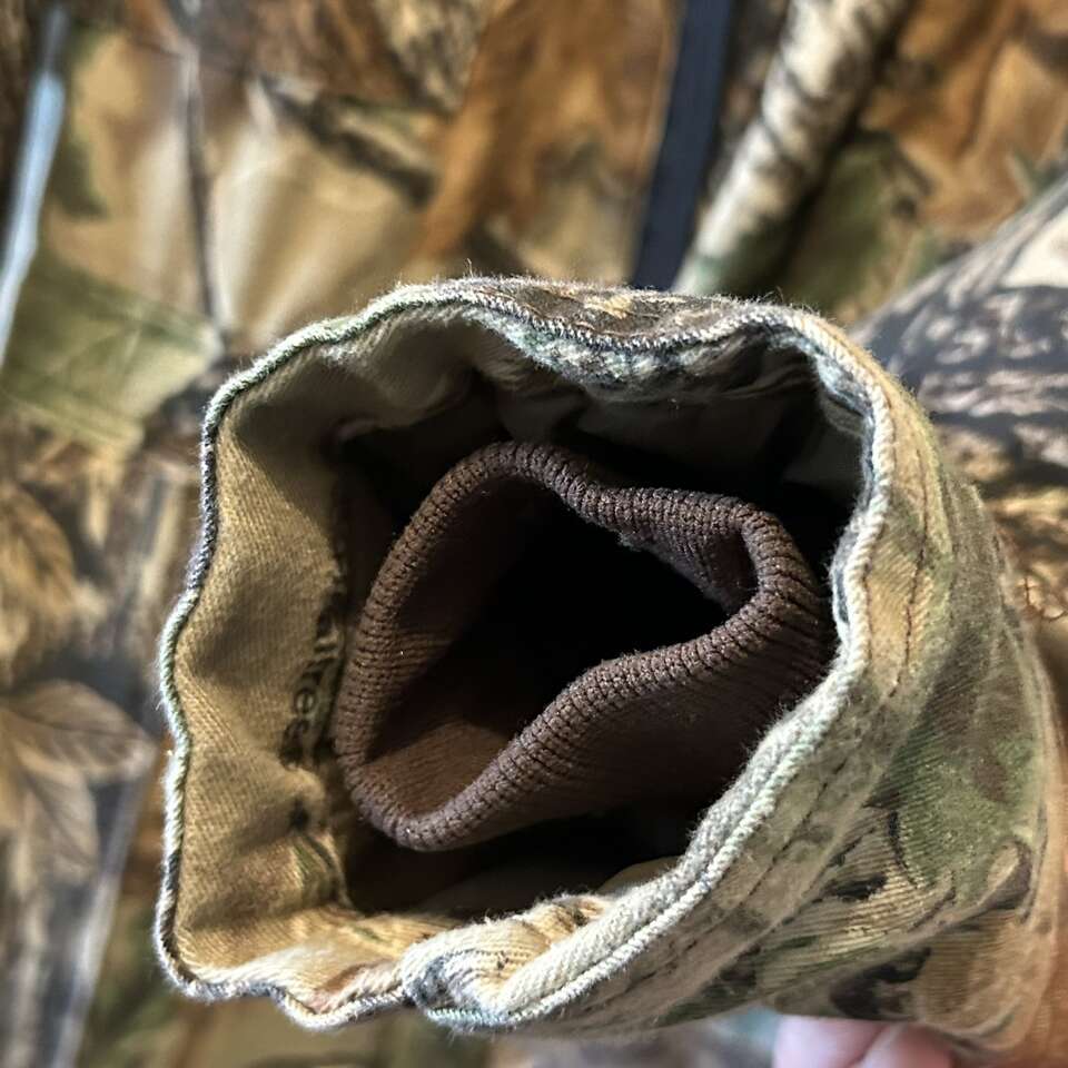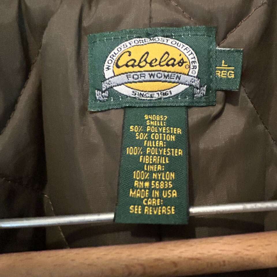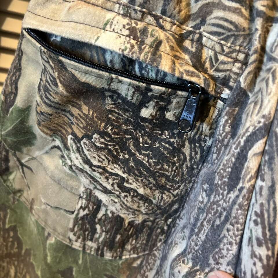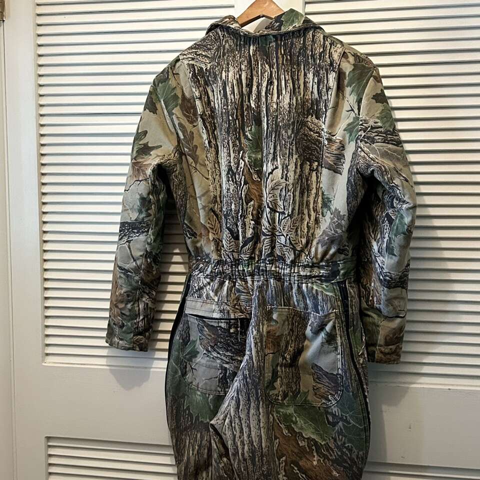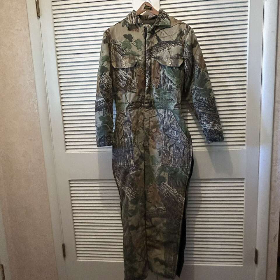 Size Large Cabela's For Women Realtree Insulated Jumpsuit. Nylon Lining Body is 50% Cotton, autumn camo patterns. Jumpsuit has gathered elastic waistband in back, 2 way zippers on the legs for ventilation, and a zipper front. Pockets: 2 breast pockets with flaps that snap. 2 front pants pockets that are open. 2 back pockets- one with working zipper. This can be used for many things other than hunting: shoveling the snow from The driveway, going out to feed the animals, and even some Winter sports. Delivery available to a convenient location when in your area for $5.