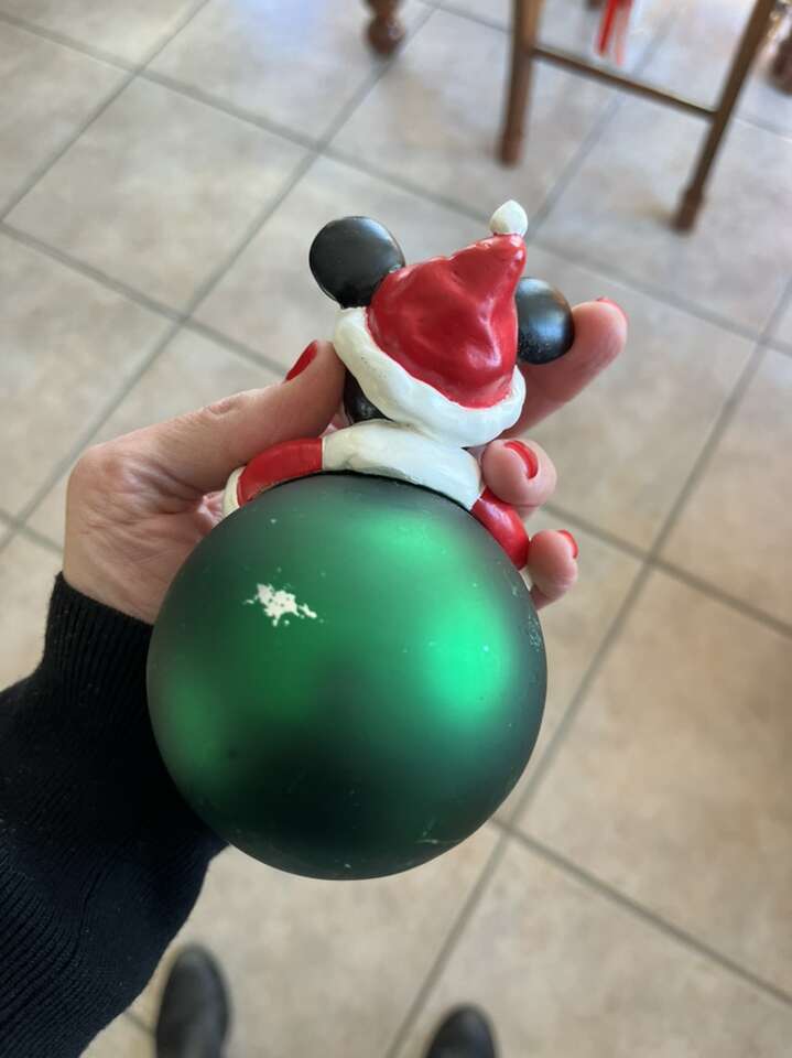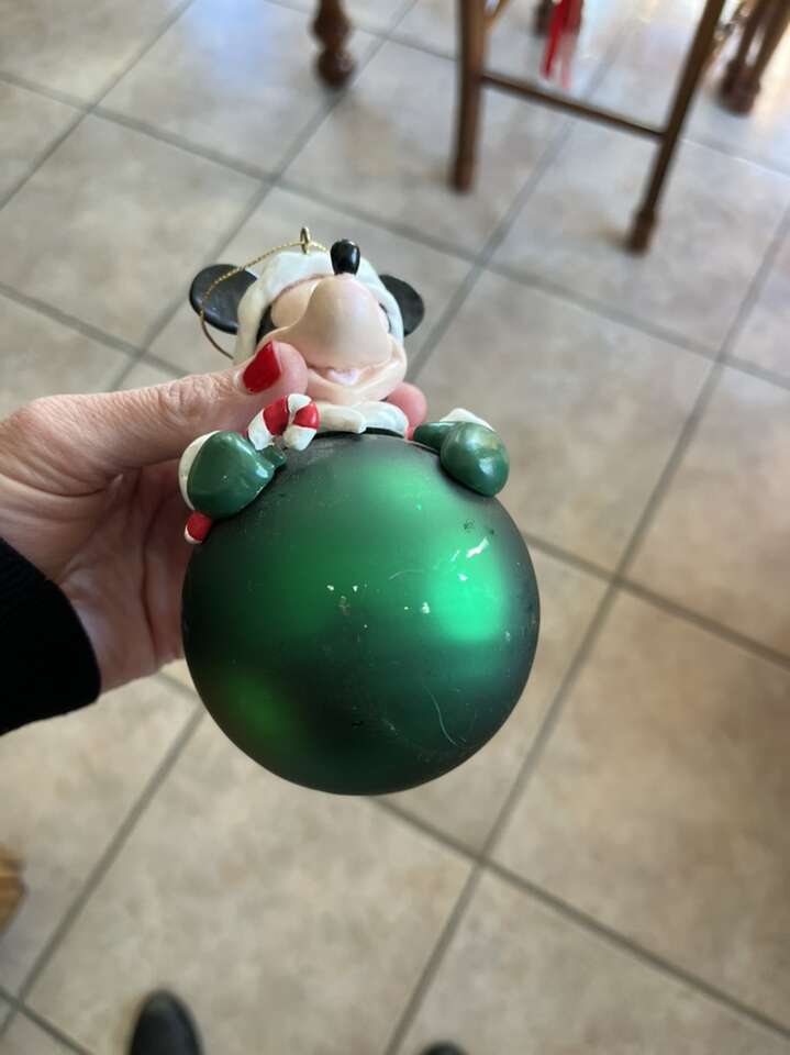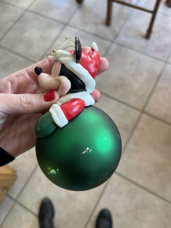 Ornament Disneyland vintage glass Mickey Mouse 6” does have scratches and scuffs