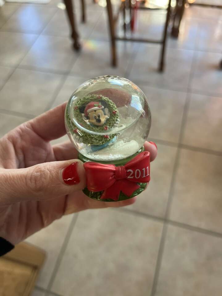 Small Christmas Disney snow globe 2011 Mickey Mouse 2 1/2” water has gone down.