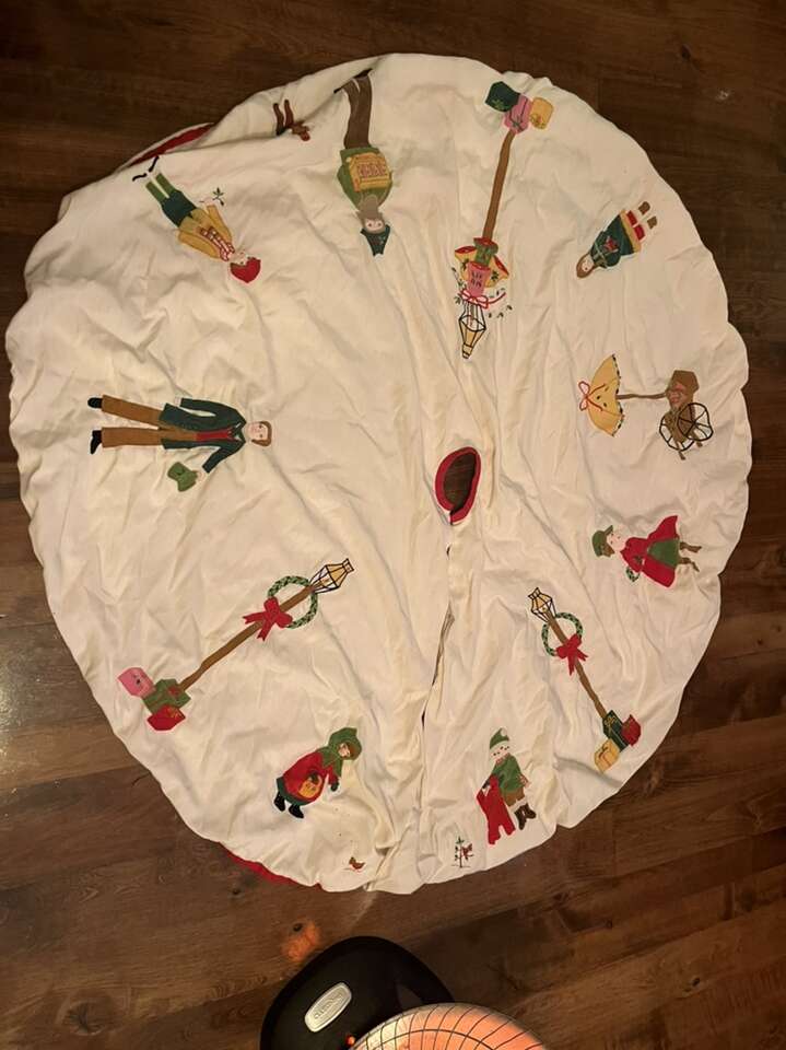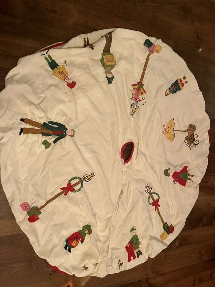 Tree Skirt vintage embroidered SO cute 48” does have some spots that have bled.