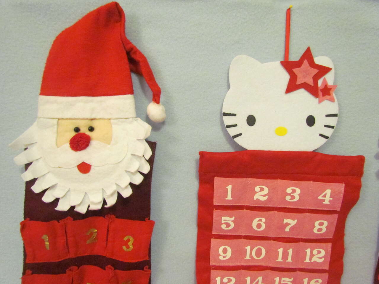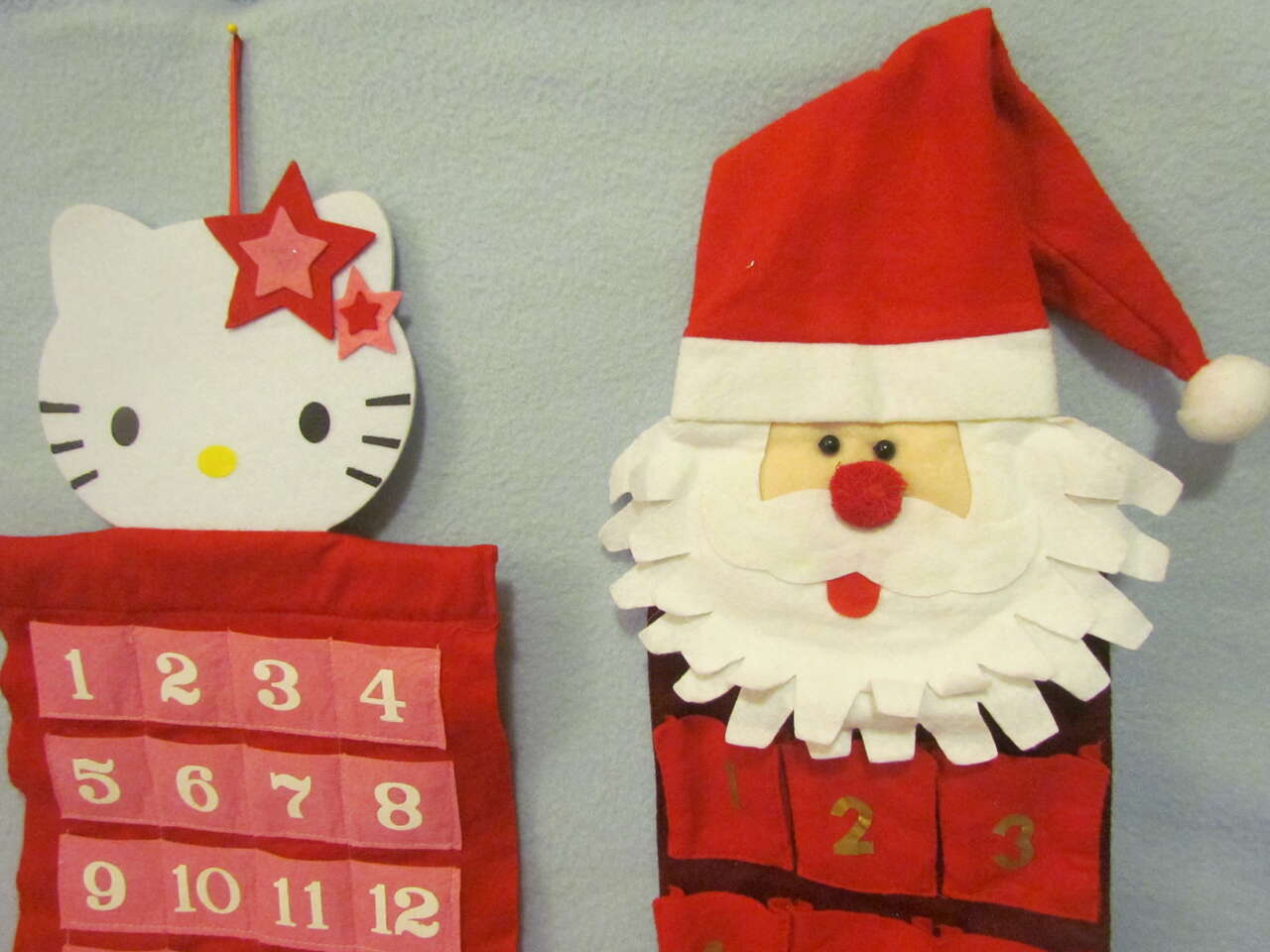 $5 each: Hello Kitty is in Like New condition. Santa on the right is in Very Good condition. Santa on the left is in Good condition (it's just a little more "loose" looking is the only way I know how to describe it.).