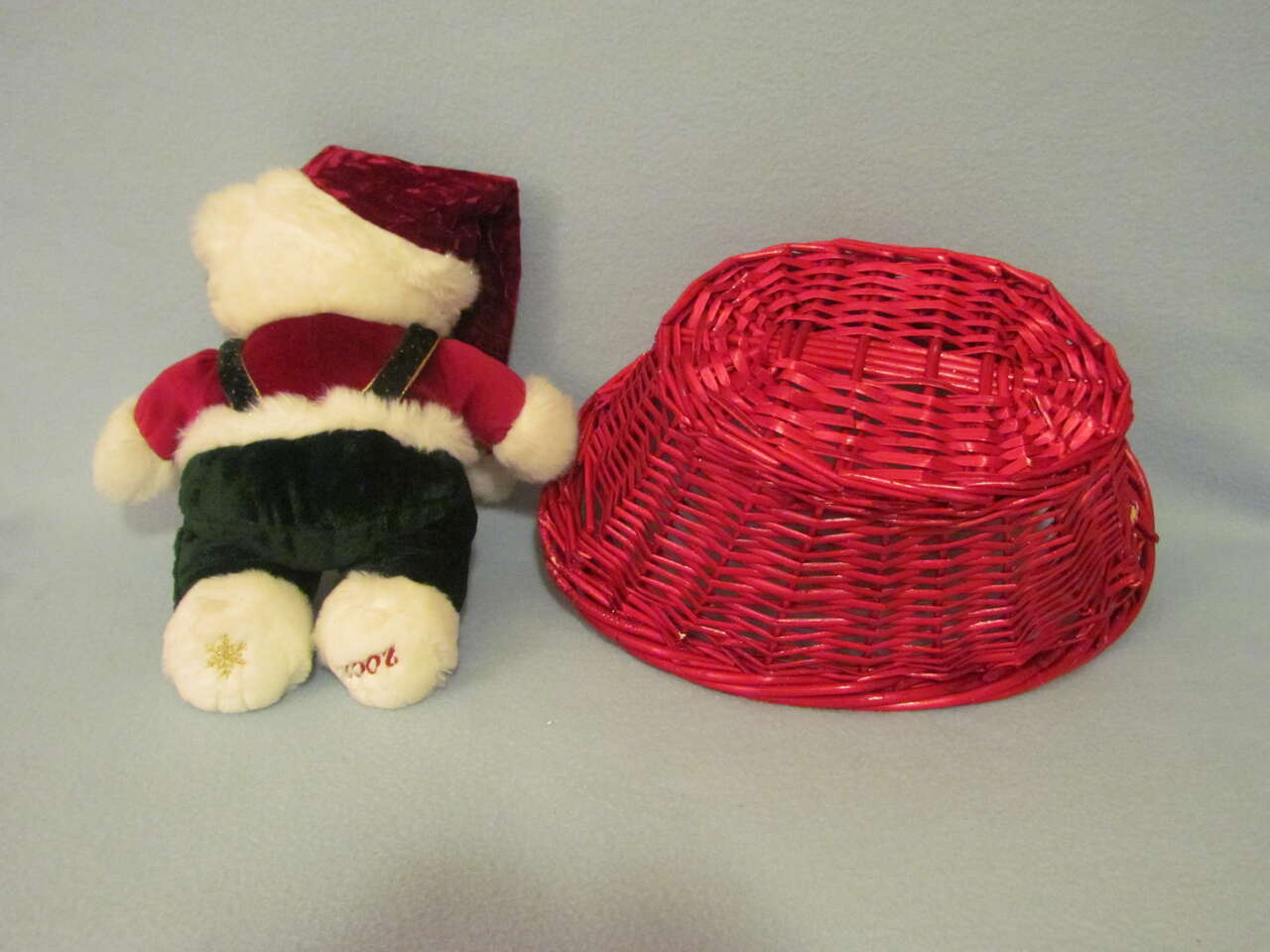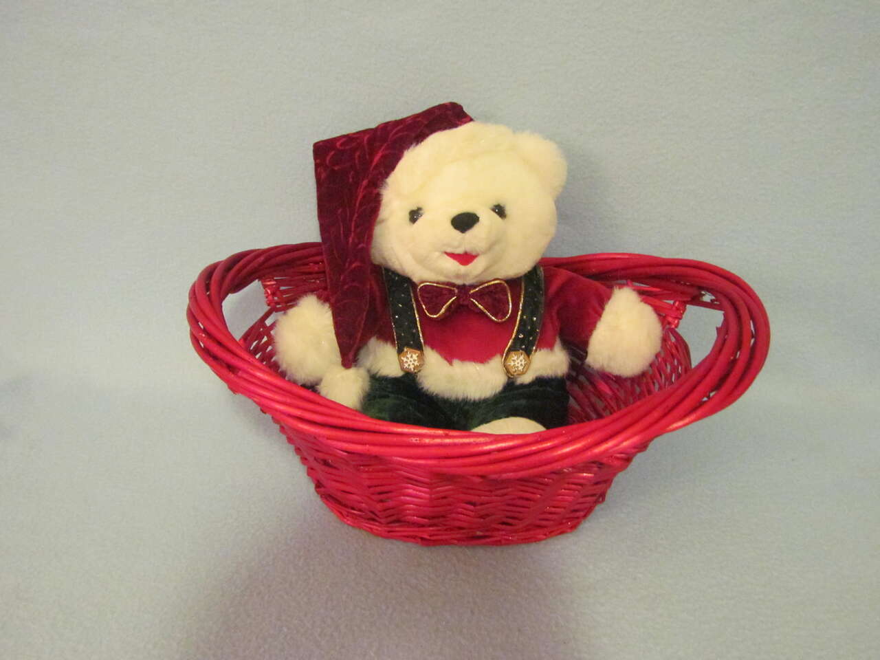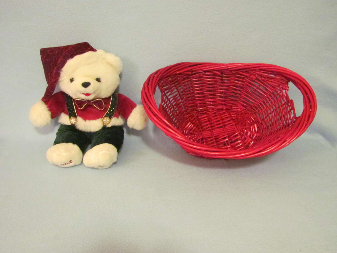 $8 Red Basket & Holiday Teddy Bear - Nice condition (If wanting them separate, $5 for the basket & $3 for the Teddy Bear.