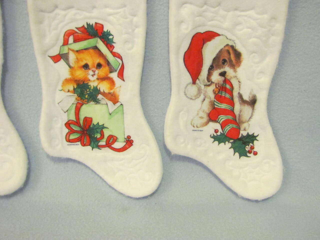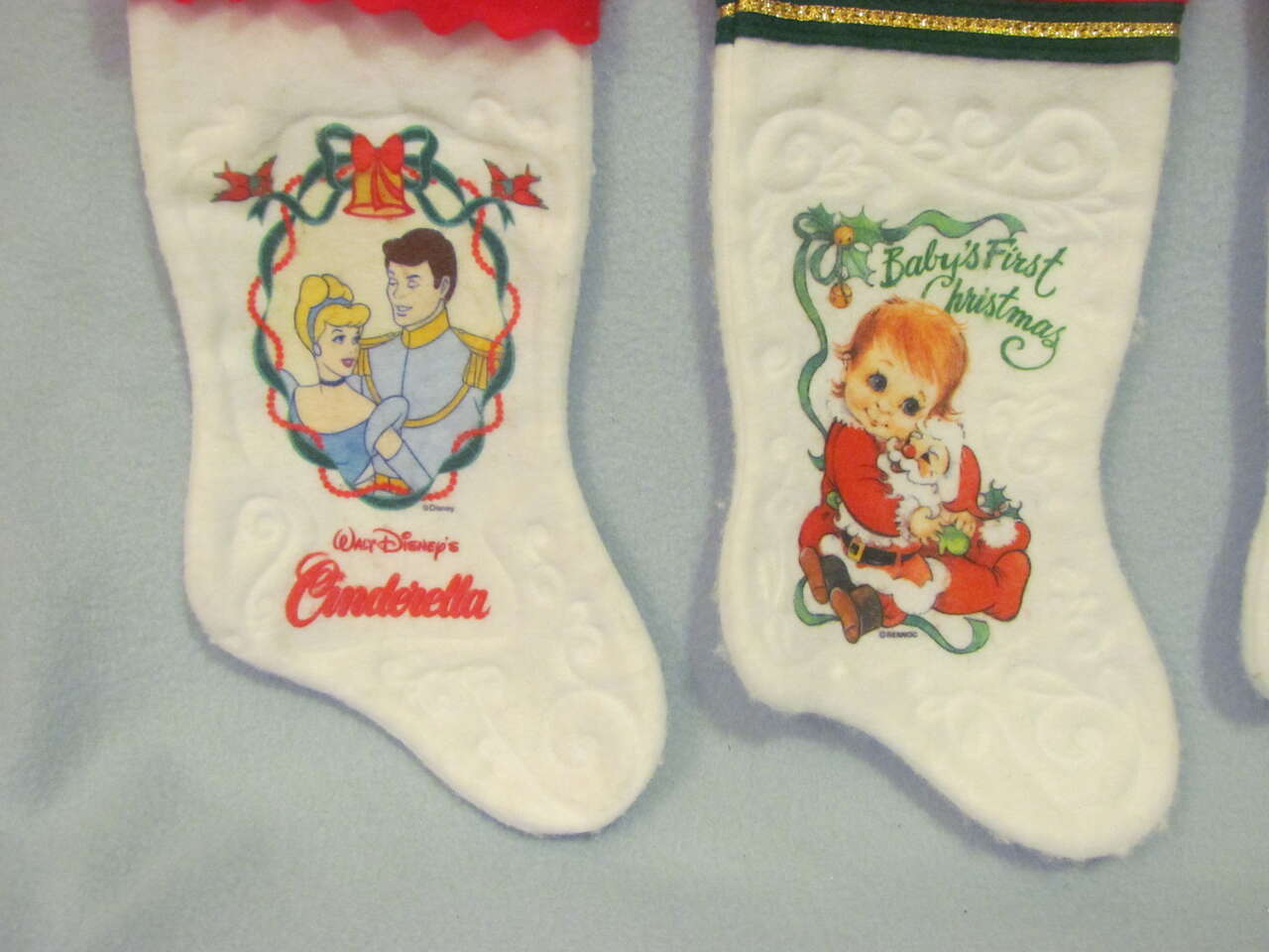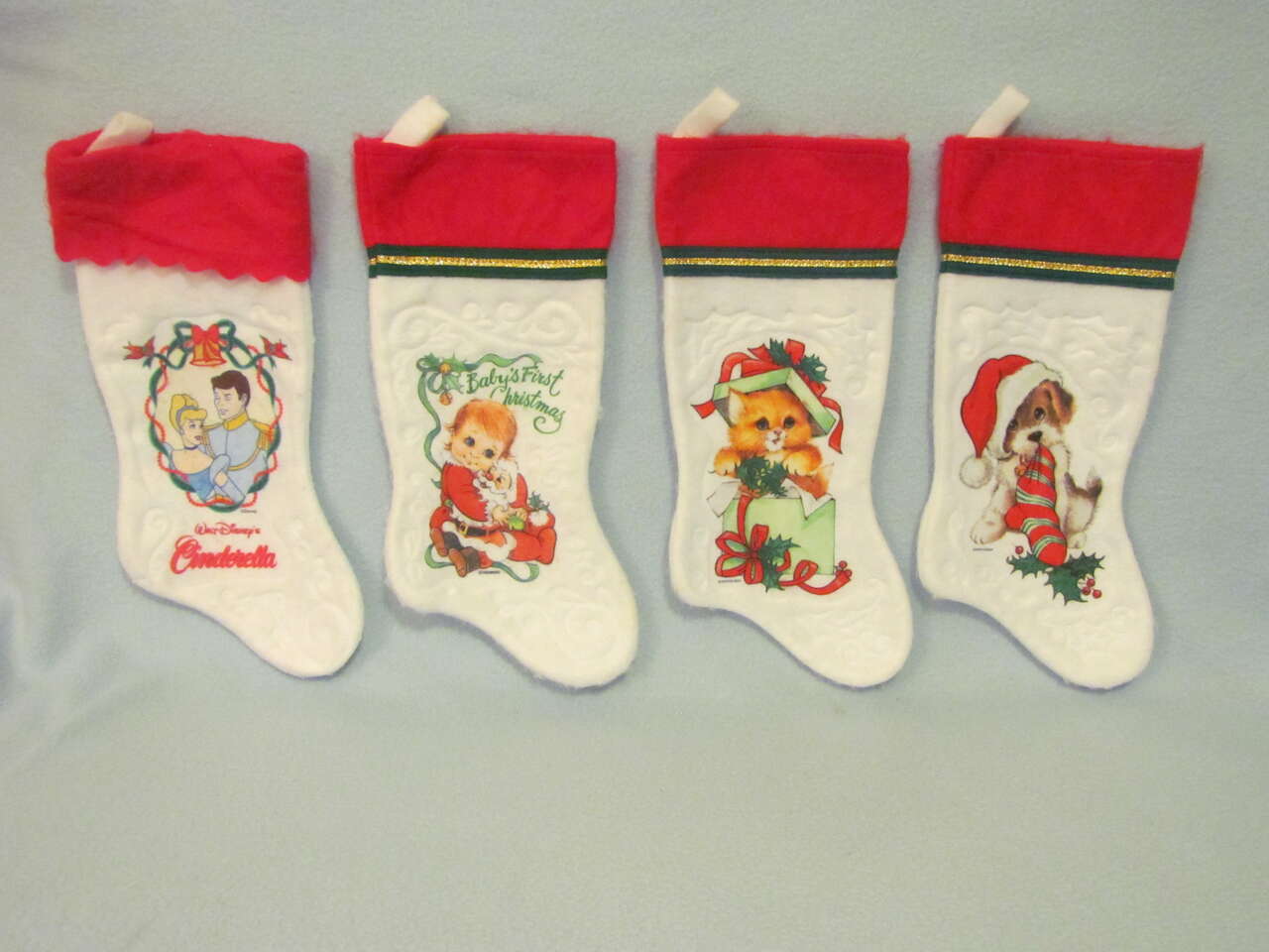 $10 Set of 4 - Puppy, Kitty, Baby, Cinderella Stockings - Good preowned condition