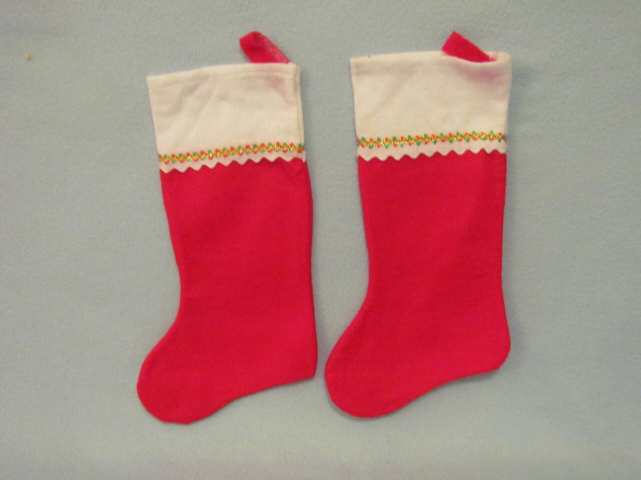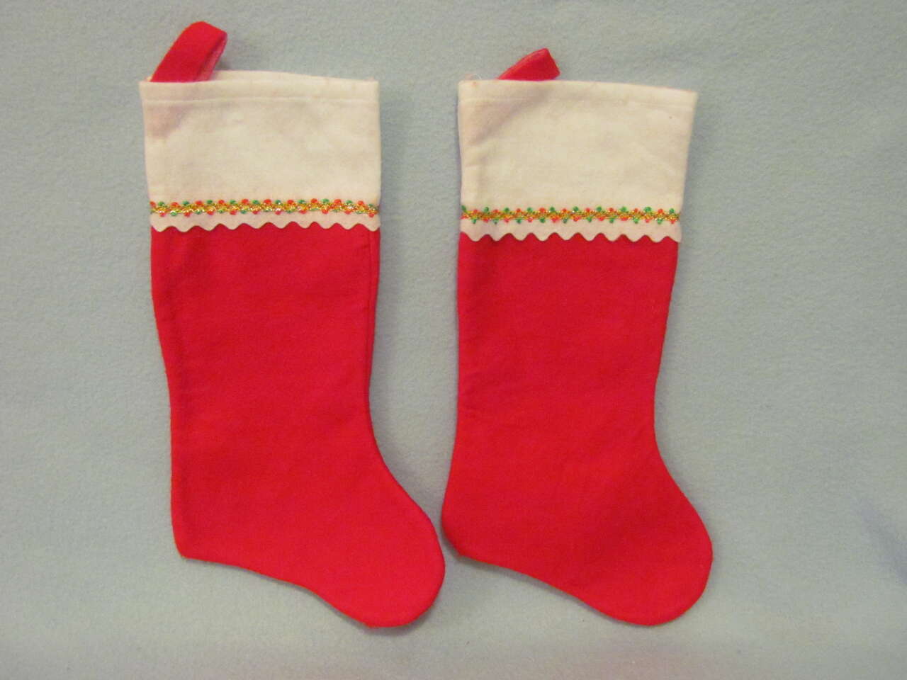 $5 Set of 2 - White & Red Rick-Rack Stockings - NEW