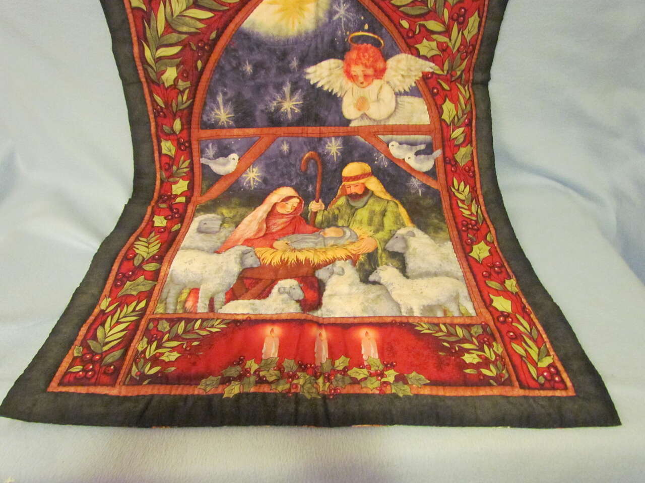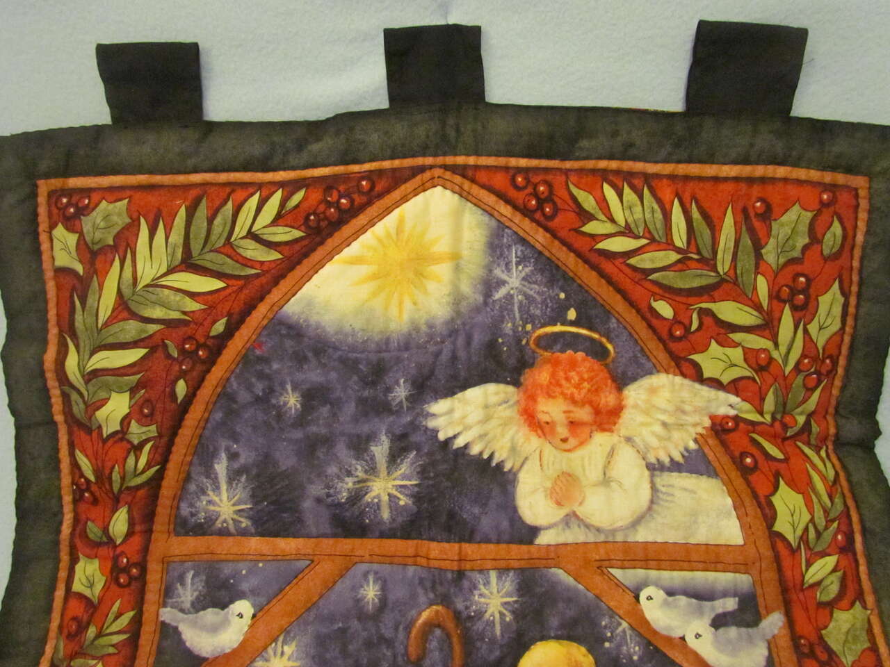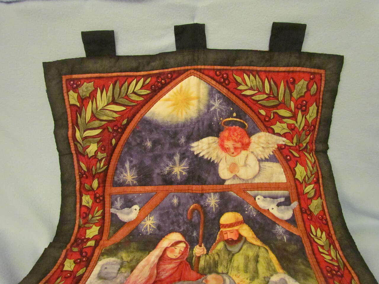 This lovely wall hanging has been displayed for maybe 5 holiday seasons and is in excellent "Like New" condition. It was stitched and made with care. Would make an excellent gift.