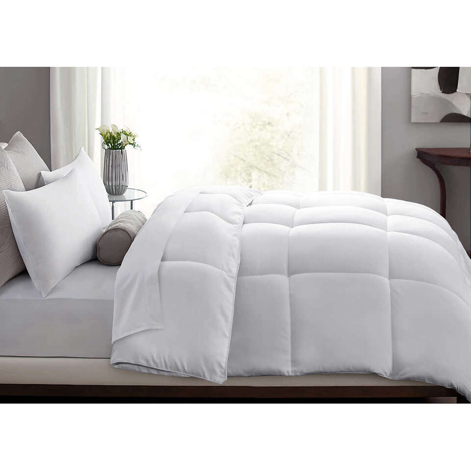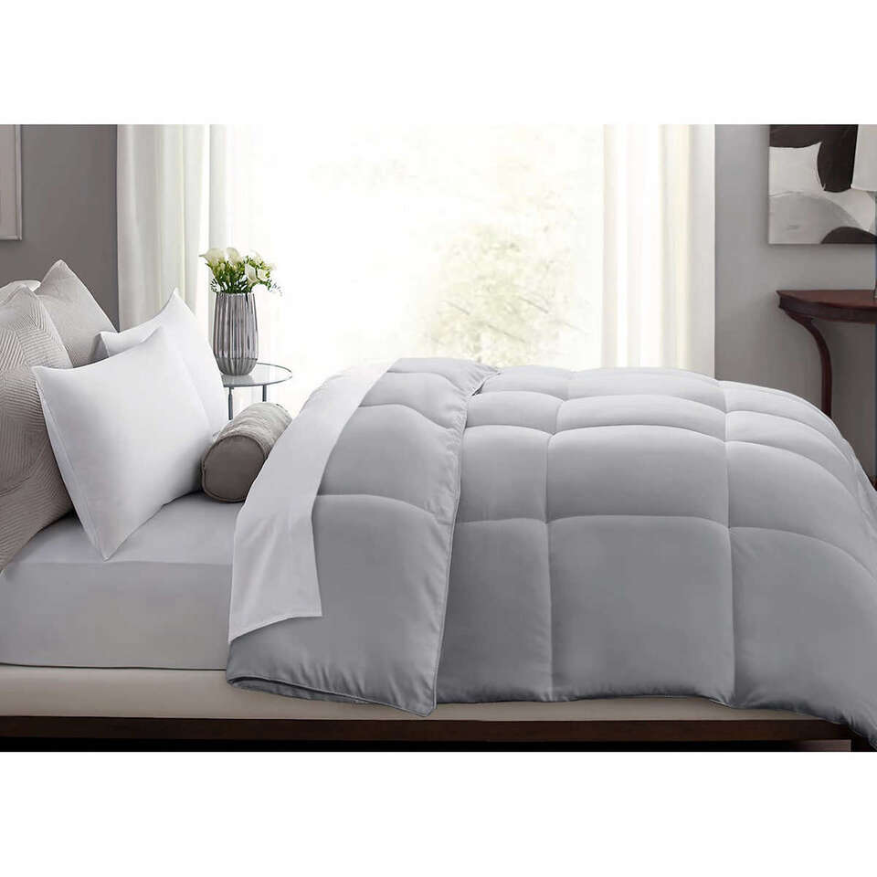 We have two of these Microfiber Down Alternative Comforters in King size #85052 available. This comforter comes in seven differnet colors (white, gray, blue, tan, green, black or purple). Colors available depend on what we have in stock at the time. These comforters come to us in various conditions from New to Lightly Used. They come in or out of the original packaging.