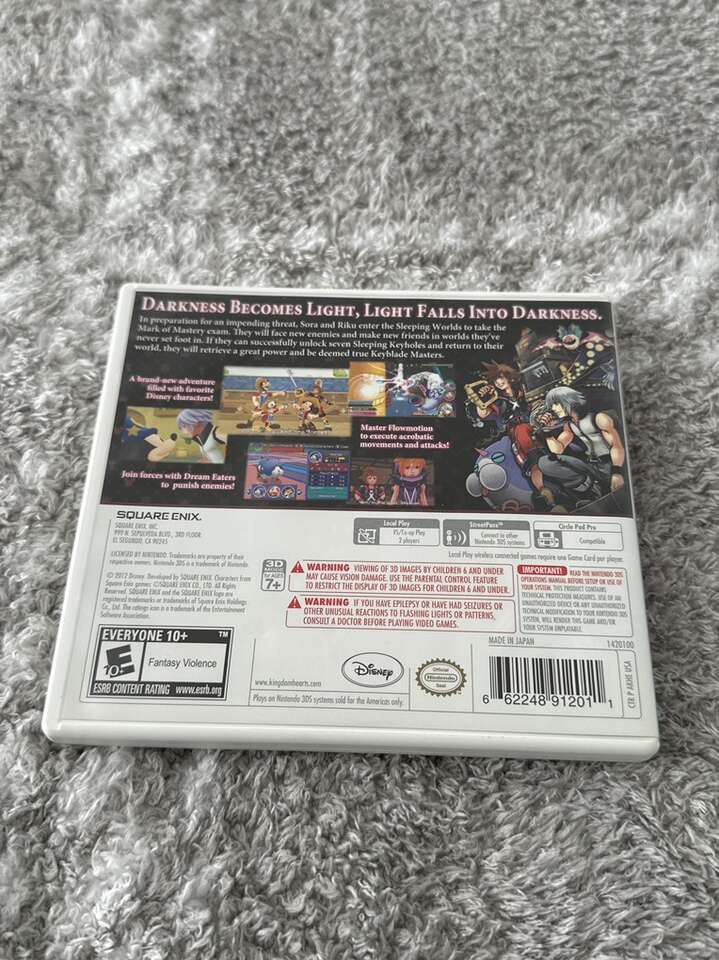 This is a copy of kingdom, hearts, 3-D Dream Drop Distance by Disney and Square Enix for the Nintendo 3DS