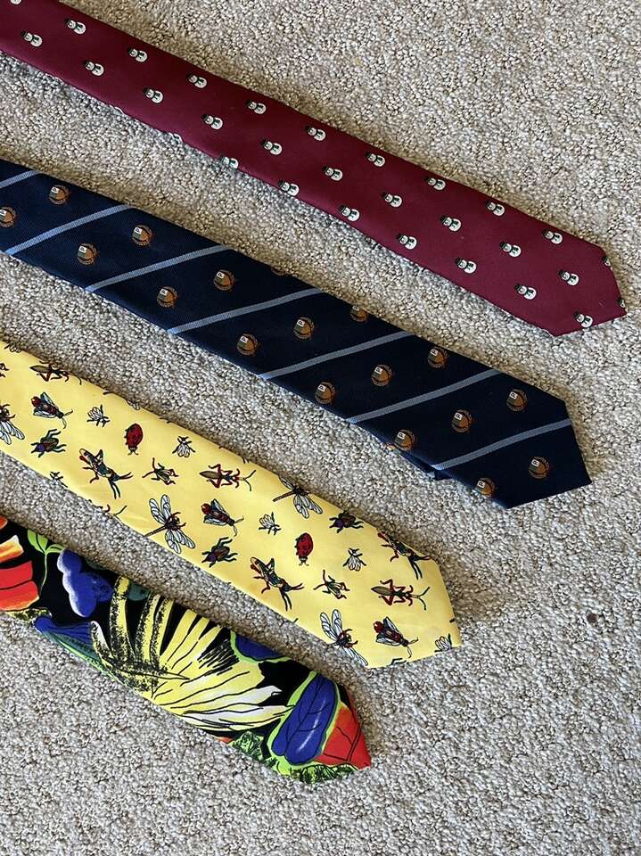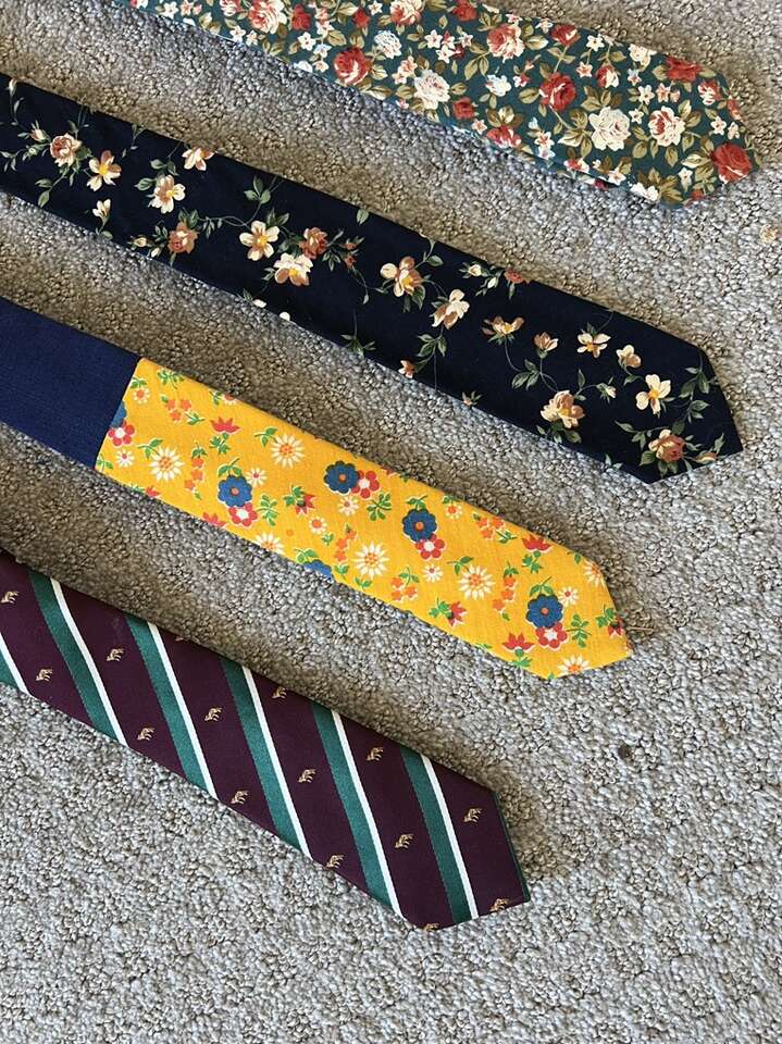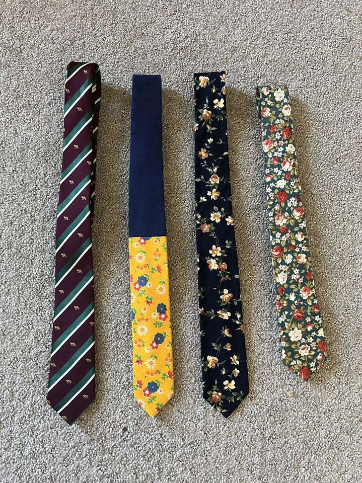 VenmoNeckties (priced separately) Striped ASOS Fox Tie $8 Linen navy/ yellow floral tie $30 (originally $65) Dark navy floral tie $25 Green floral tie $25 Retro Tropical plant tie $5 Vintage bug tie $8 Navy Blue Crest Tie $8 Snowman ASOS Tie $8 Tie Hanger & Silver tie clip for $5 Cash or Venmo. Will hold with Venmo payment.