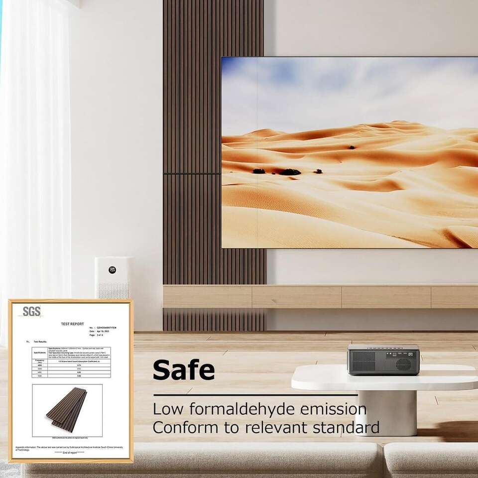 Reducing Echo and Noise Our wood panel designed to provide excellent noise-cancellation capabilities making it ideal for use in homes offices studios and other spaces where acoustic quality is a priority.can well absorb the echo and noise effectively improve your sound environment and quality. Elegant Aesthetically Wood Wall Panels not only functional but also visually appealing. The wooden slats create a natural and warm appearance adding a touch of elegance and sophistication to any room. Package Dimensions Handcrafted of premium oak wood with natural wood grains our accent wall panels exude sophistication. Complement the style of your room with stylish wall sound panels or ceiling wood panels. Hard cardboard box with 2 wood wall panels inside measuring 47.2 x 12.8 x 0.82 which can covers about 8.36 sq.ft.and the backing felt is made of recycled material. Safe and Eco Friendly Passed UL certified Made of quality MDF with high density polyester fiber no harmful chemical emissions and low TVOC levels.