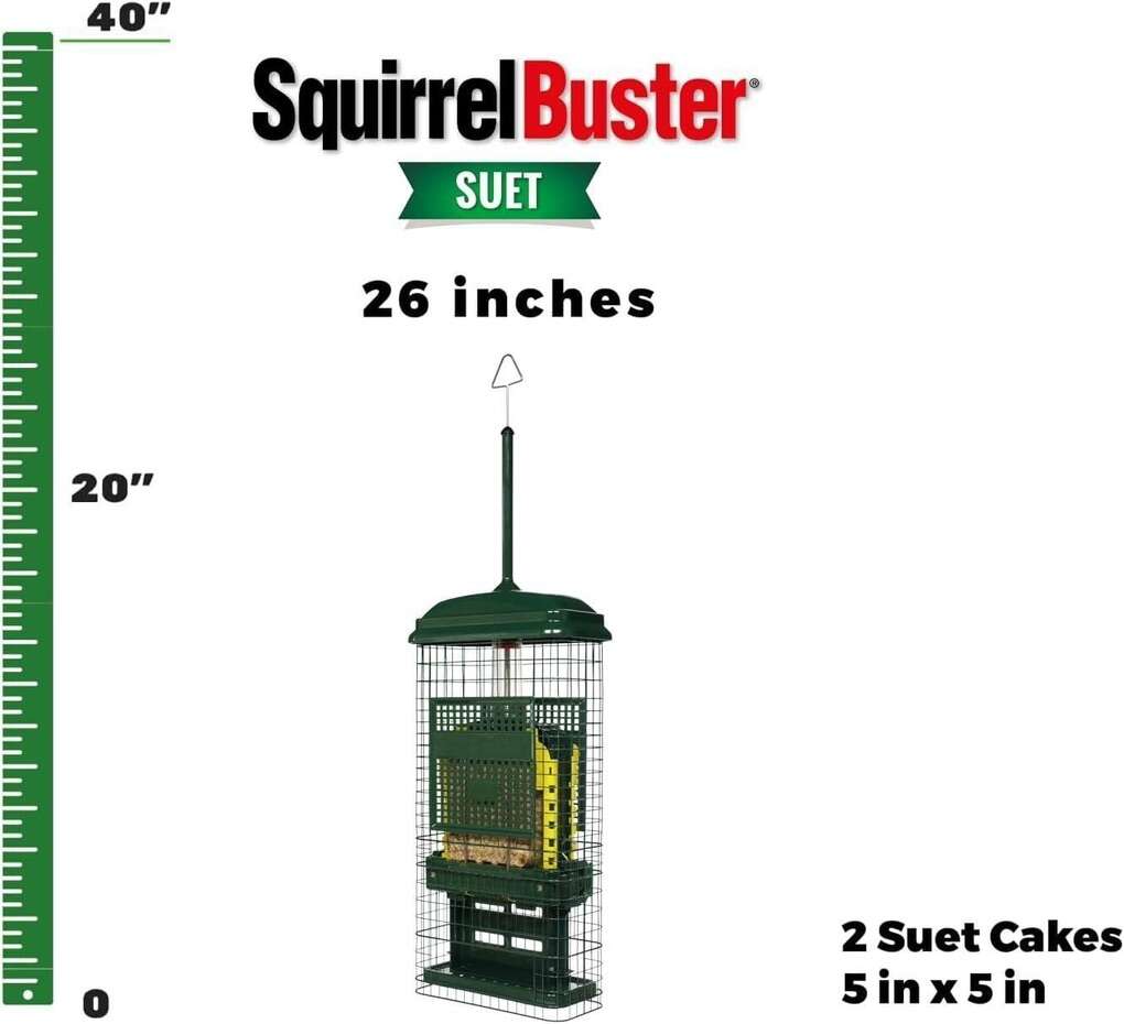 ApplePaySquirrel Buster Suet Squirrel-proof Suet Bird Feeder w/2 Suet Cake Trays, 2 Crumb Ports, Mess-free Suet Loading,Green