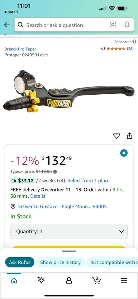 Protaper 024090 Lever Atv $80 Yamaha 450# Banshee Yamaha raptor