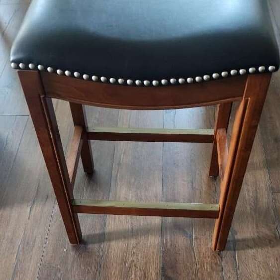 Venmonew leather and wood bar stood. bought it never used. seat depth 12 inches seat width 18 inches height 25 inches