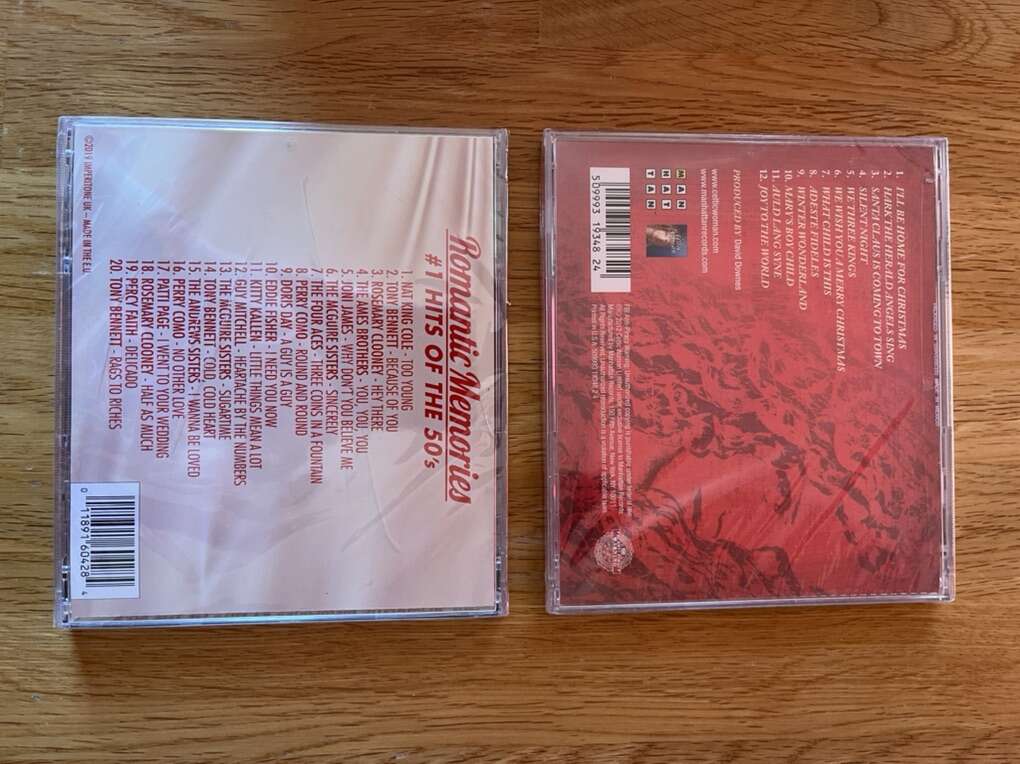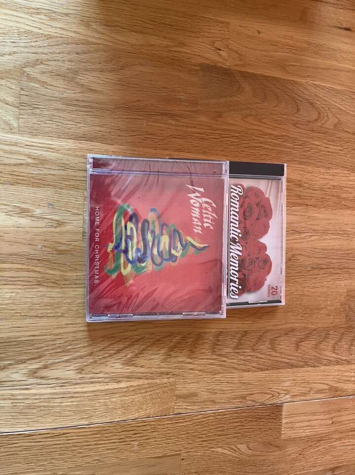 Never opened set of 2 CDs: Home for Christmas by Celtic Woman (printed in EU) and Romantic Memories #1 hits of the 50’s (printed in US). $6 each or $10 for both.