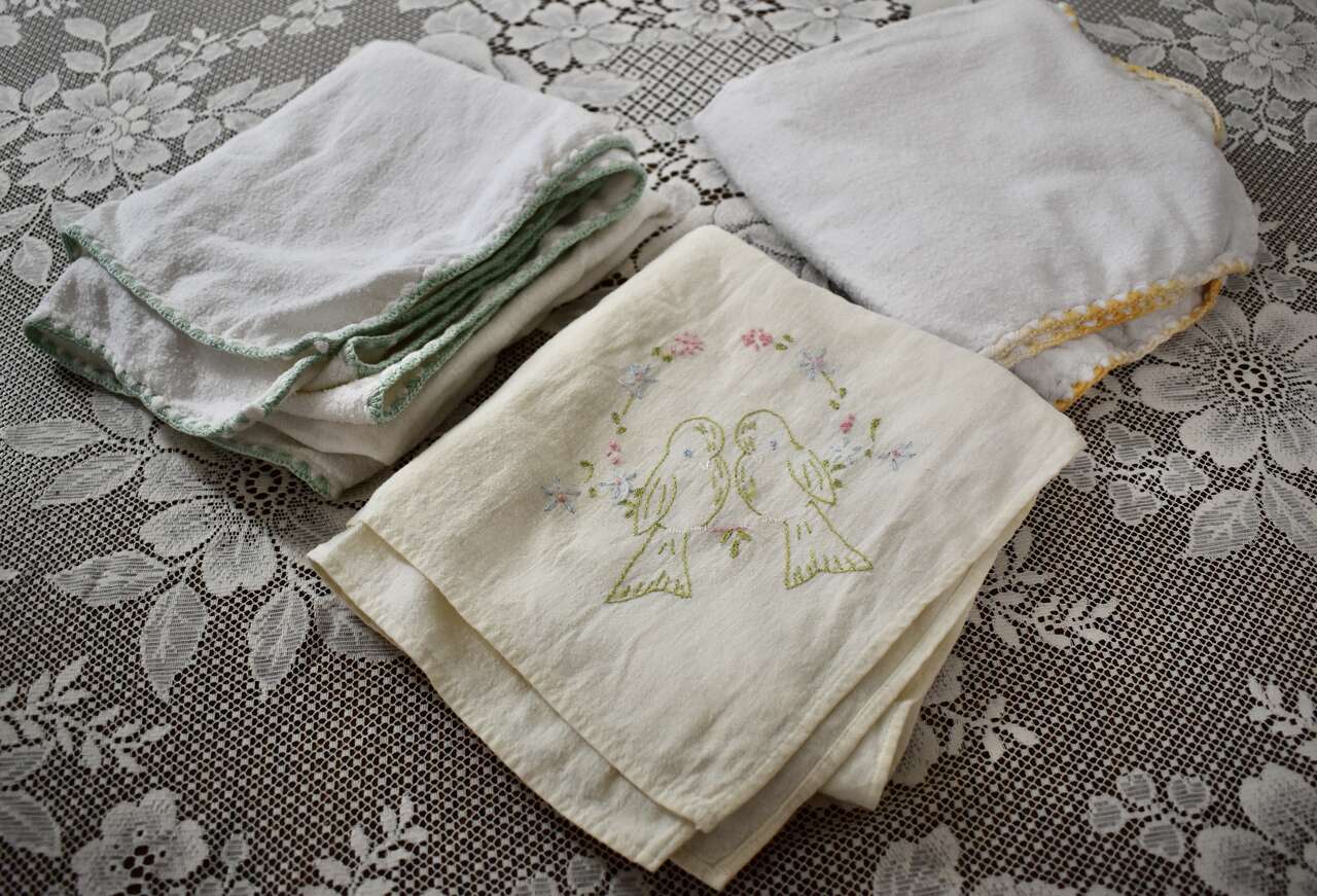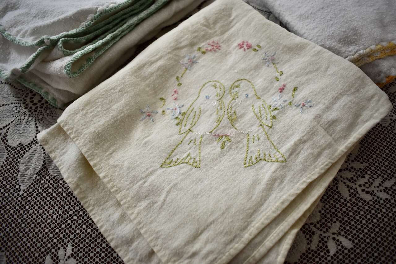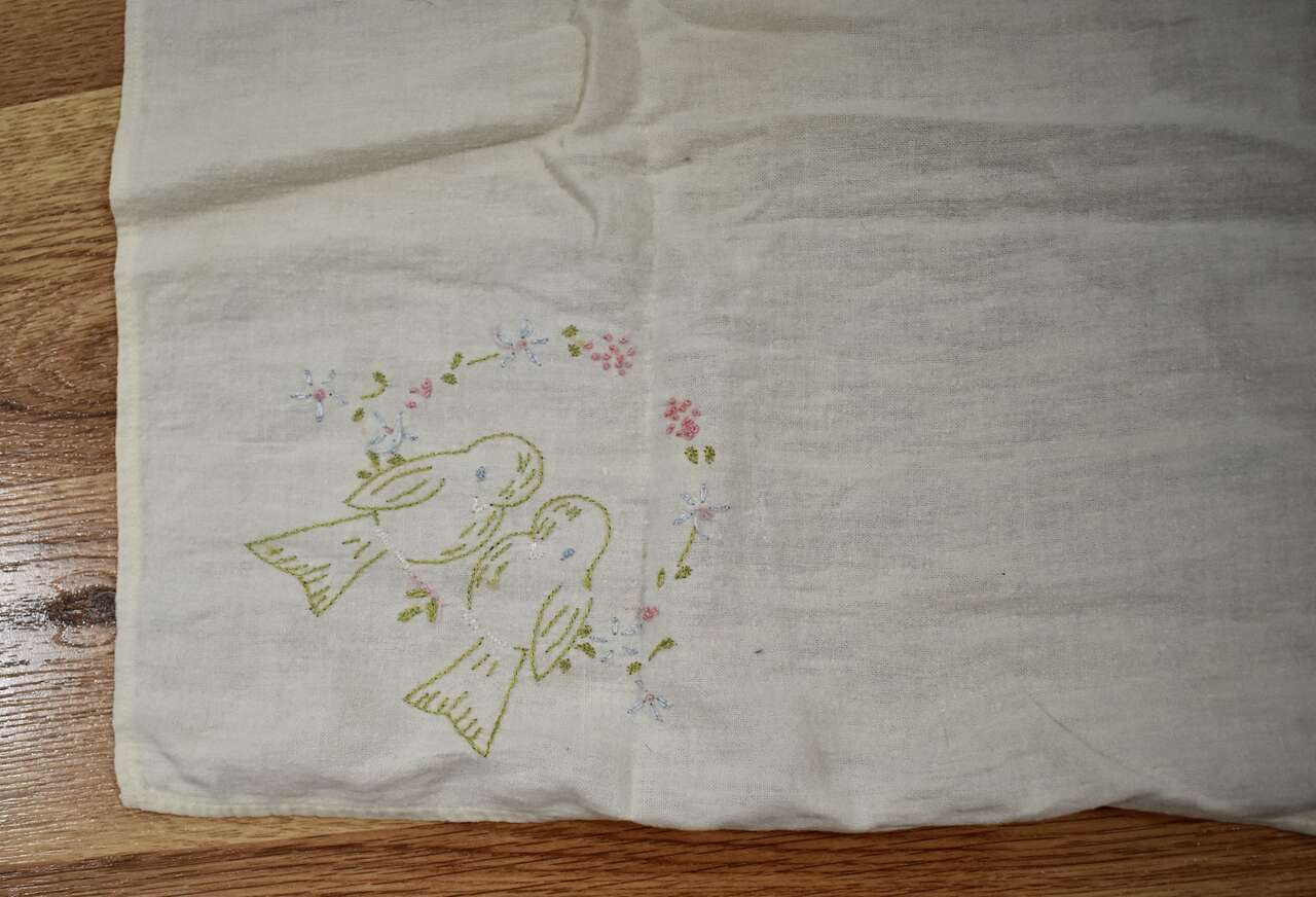 ***PLEASE NOTE.. The one with the bird embroidery design has a couple of very small holes at one end that could be mended or left as is as you can see in the photos. ~~ Thank You! ~~