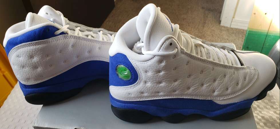 Elevate your sneaker game with these NEW Air Jordan 13 Retro Hyper Royal kicks sold on 2017. Made with high-quality leather, these athletic shoes exude style and comfort. The white color and sleek design make them the perfect addition to any sneaker collection. Complete with the iconic Air Jordan product line and released in 2017, these sneakers are a timeless classic. Perfect for men who value timeless style and practicality, they are the ideal choice for any occasion. Get ready to step out in style with these Air Jordan 13 Retro Hyper Royal sneakers. Great Sneakers for Christmas gift. see all photos, text message is better, see my other adds, thank you.