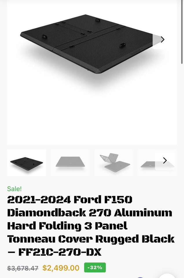 This is a new in box Diamondback Aluminum Diamondplate Tono Cover in Black Finish Model FF21C-270-DX. This fits a 2021-2024 (may fit newer years as well) Ford F150 with a 5’7” Short bed truck. Asking $1950. Any questions text or call Tom at 801-953-3338