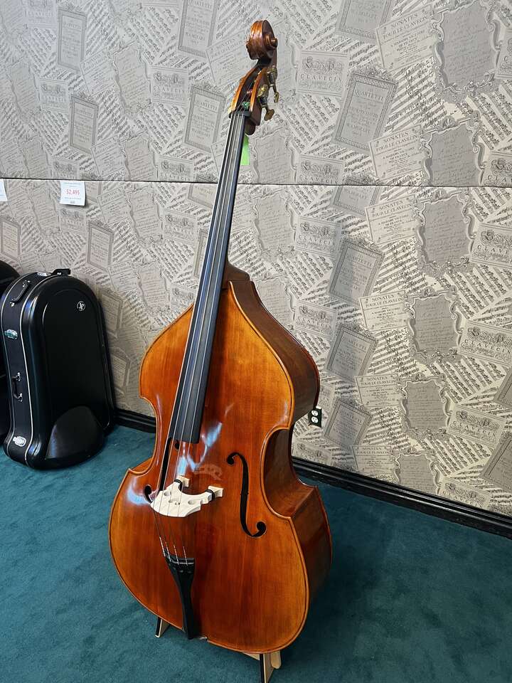 The Samuel Shen String Bass SB200 Mirecourt is a high-quality double bass designed for both intermediate to advancing musicians. Crafted with a solid spruce top and willow back and sides, this instrument produces a warm, full tone that resonates beautifully across various musical styles. The Mirecourt model features a comfortable neck and fingerboard for ease of play, while its traditional design ensures excellent projection and clarity. With its combination of quality craftsmanship and affordability, the SB200 Mirecourt is an ideal choice for those looking to enhance their double bass playing experience.
