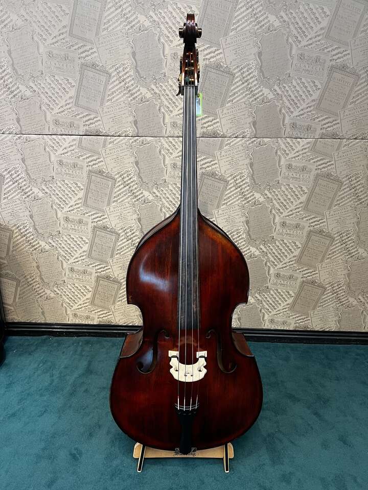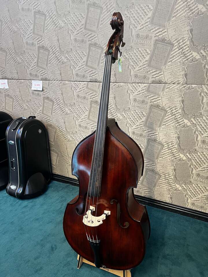 The Gewa String Bass Walther 11 is a high-quality double bass designed for both students and professional musicians. Crafted with a solid spruce top and laminated back and sides, this instrument delivers a warm, resonant tone with excellent projection. The Walther 11 features a comfortable neck and well-shaped fingerboard, allowing for smooth playability and ease of technique. Its traditional design ensures durability and reliability, making it suitable for a variety of musical styles, from classical to jazz. This double bass is an ideal choice for those seeking a blend of craftsmanship, sound quality, and affordability.