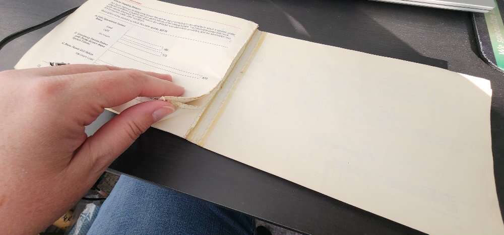 The cover came off and my dad stapled it back on. the pages are in good condition but the binding of the pages is starting to come apart on the pages at the end of the manual.