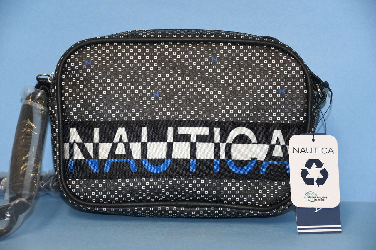 This NWT NAUTICA CROSSBODY BAG is about 6" x 8" x 2". It has an adjustable strap. There is a back slide pocket. The top is zippered & opens to a zippered pocket. Our hoe is smoke free. Questions??? Please ask. We are located in Plain City. Cash only please.