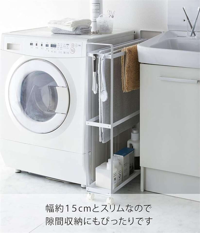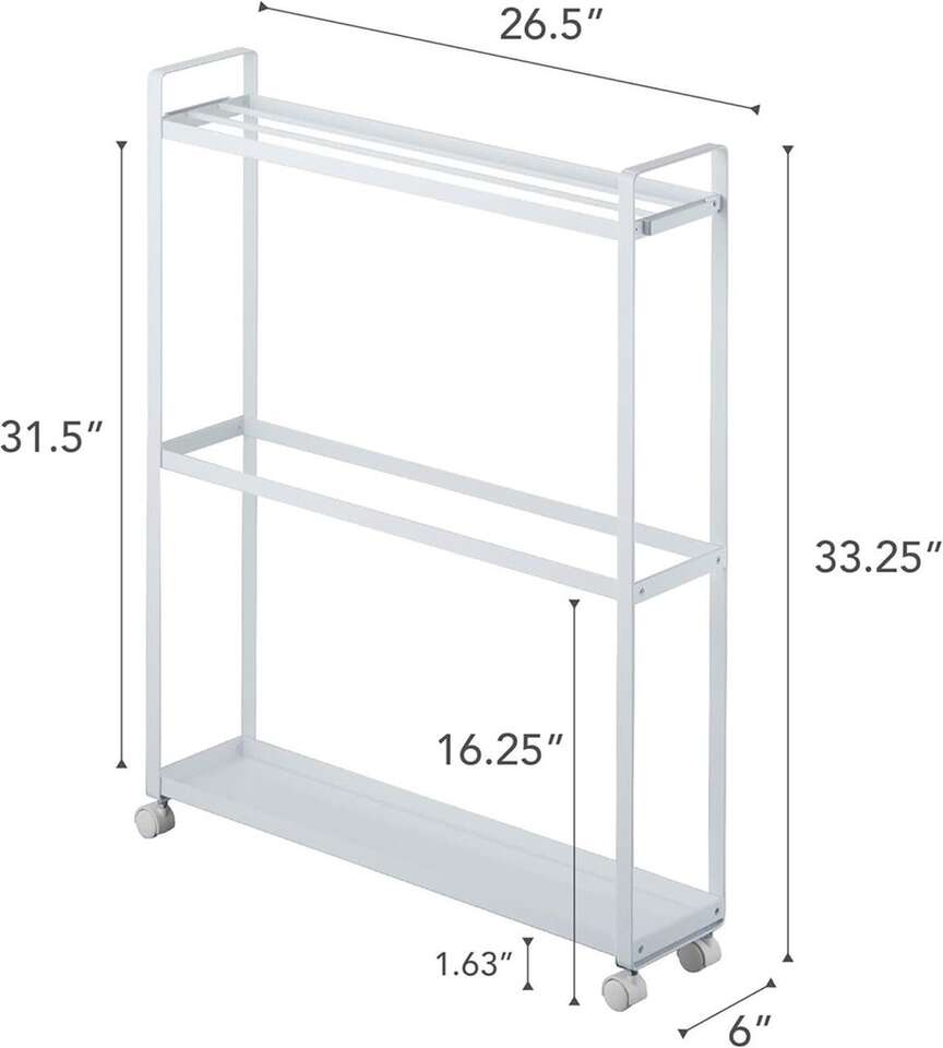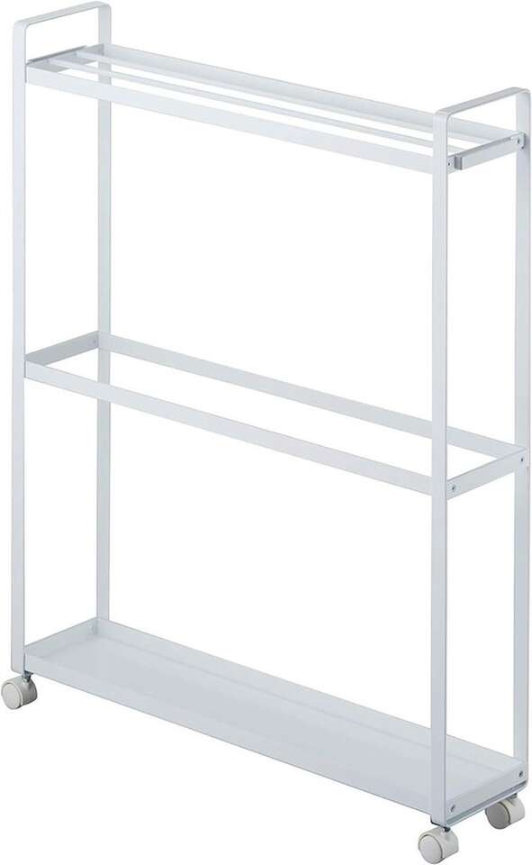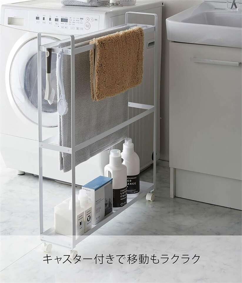 BATH CART: This thin profile storage cart pulls double and triple duty while taking up minimal space. This rack is great for organization making it easy to wheel between or alongside laundry or bathroom appliances or sinks.