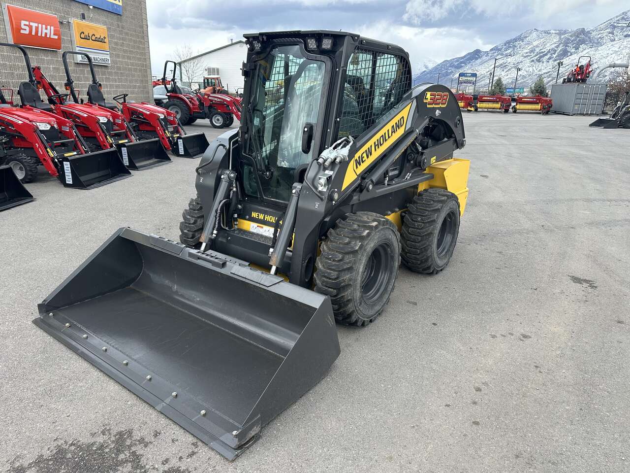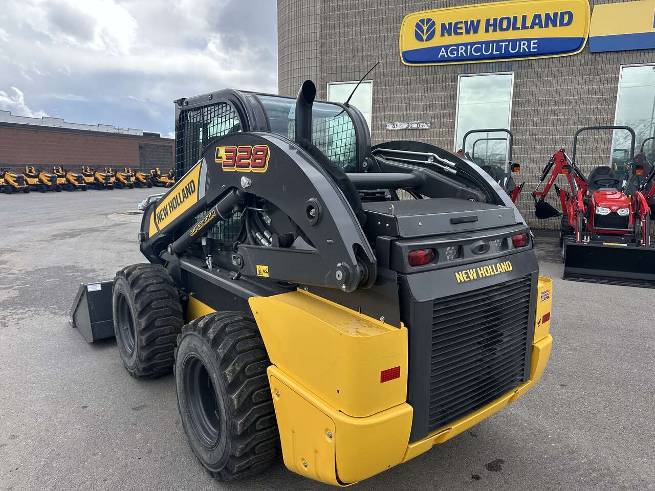 Brand new 2025 New Holland L328 skid steer. Enclosed cab, HVAC, 2 speed EH (joystick) controls, hyraulic coupler, 84" bucket. Financing options are available!
