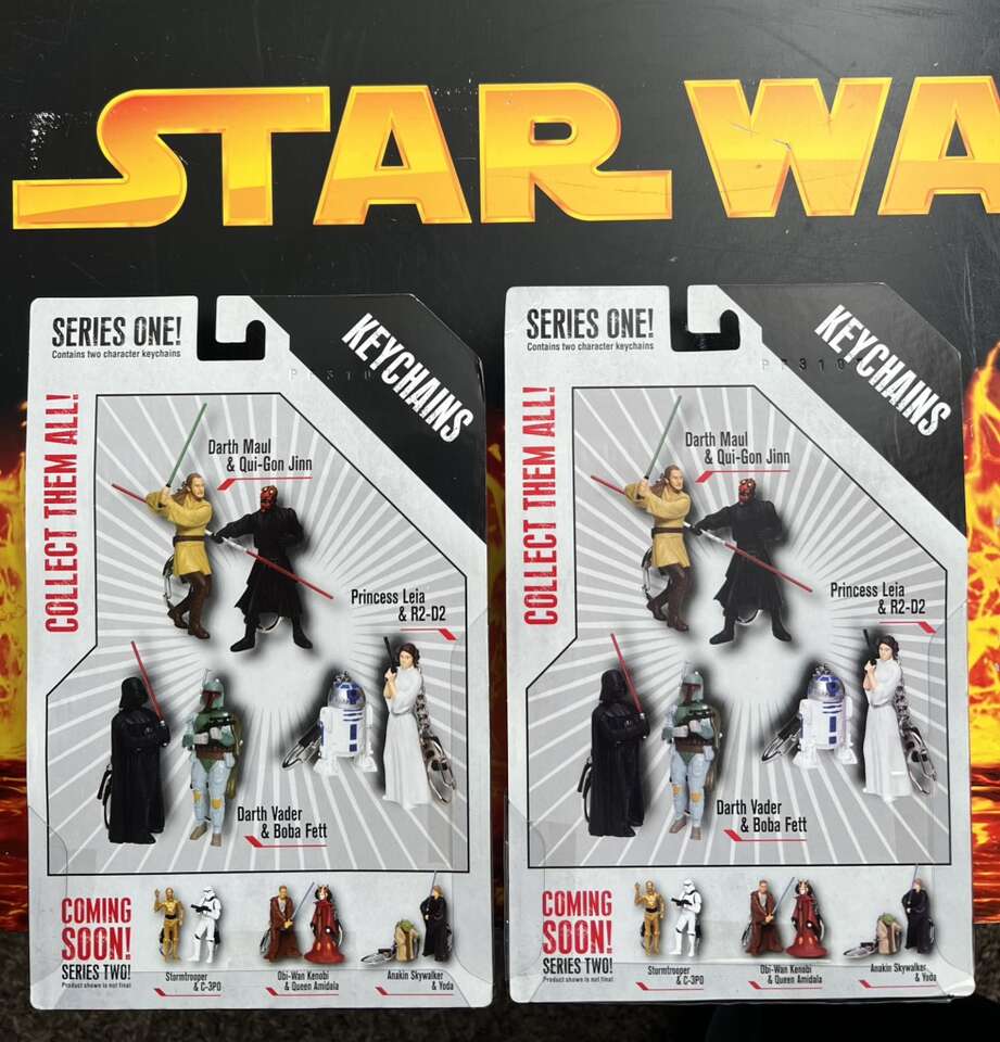Star Wars Series One Keychains with 4 Star Wars Figures - Princess Leia & R2-D2 set And Darth Maul & Qui-Gon Jinn set. Great shape and never opened See pictures for details. Price is for BOTH.