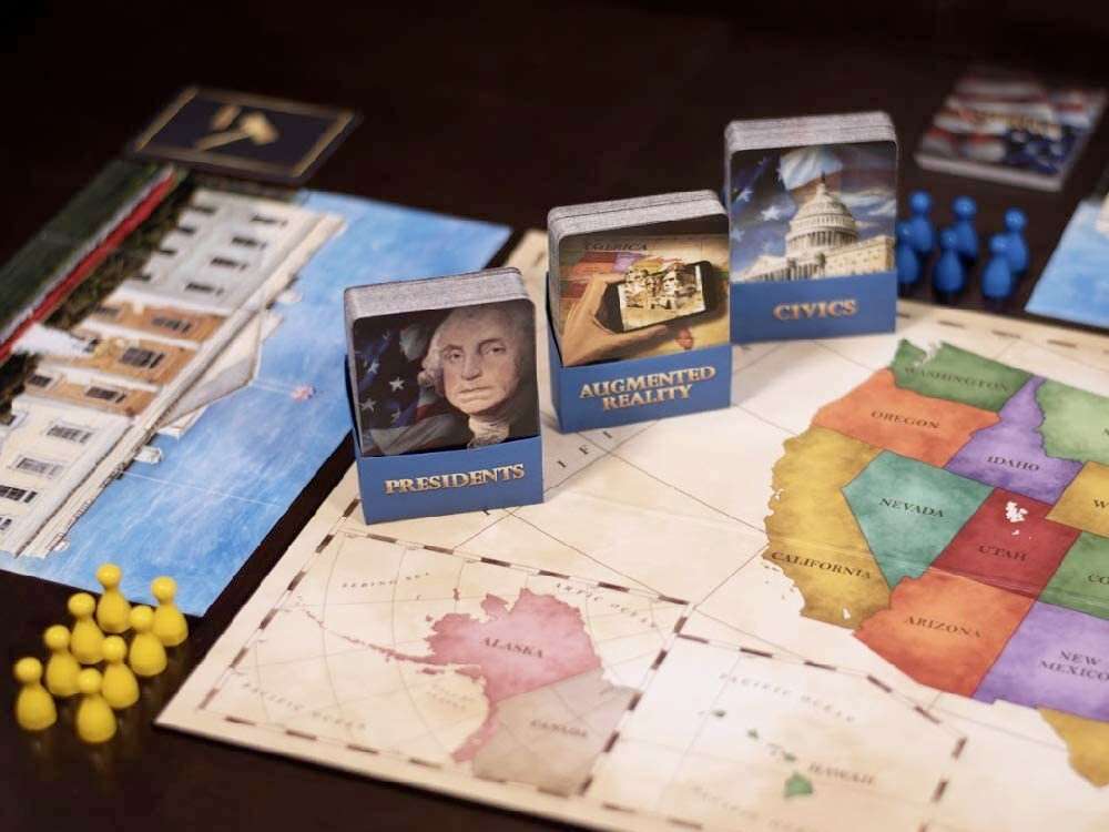 Each State Card has a number. This signifies the number of questions that need to be answered to win that state. who can win the states by answering either 2,3,4 or 5 questions; this depends on each state’s size and population. Similar to what happens in the electoral college).