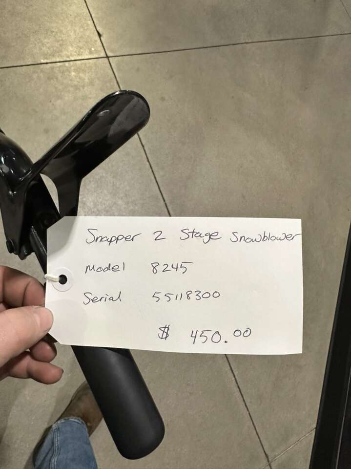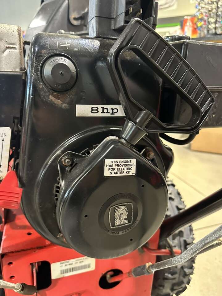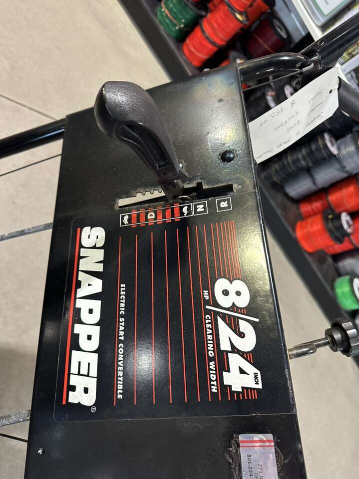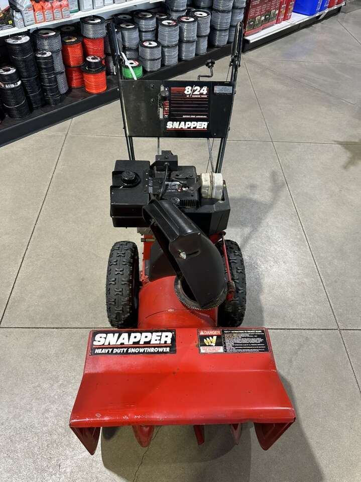 This is a used Snapper 2-stage snowblower for sale at Cutler's in Orem! This model is powered by a Tecumseh 8 horsepower 4 stroke engine. This model has a 24 inch plowing width and a variable speed transmission with 6 Foward gears, 1 Neutral gear, and 1 Reverse gear.