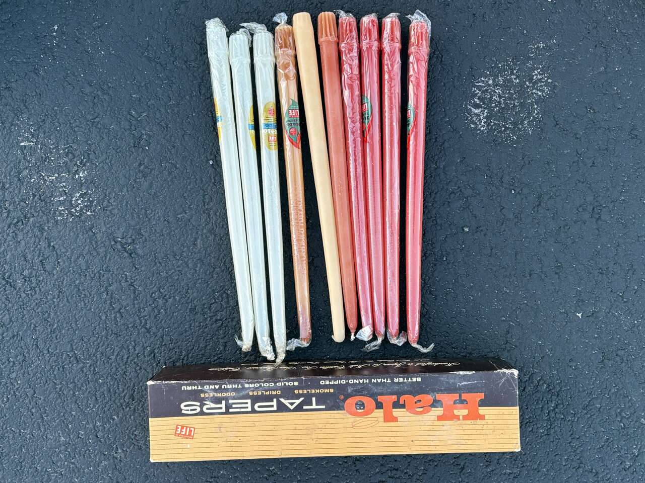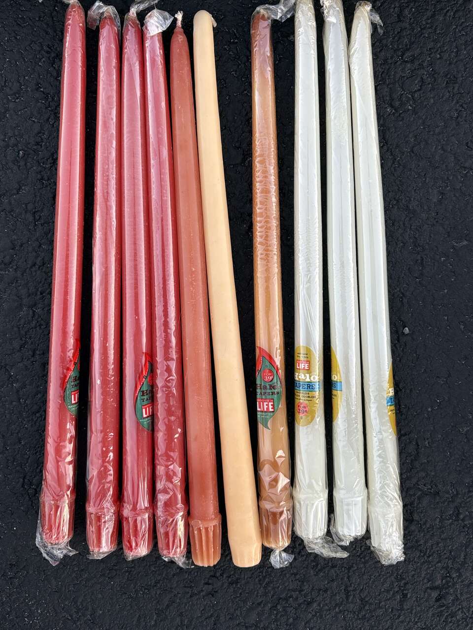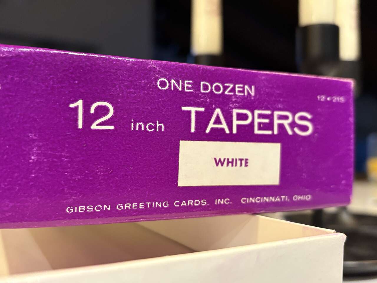 VenmoNew in box, Vintage 12" Taper candles. Hand made in the USA. White still in celafane wrap $1 per candle. I have around 100 of these candles- brand new in their original boxes And still wrapped in cellophane I'm also selling a great collection of vintage, mid century candlestick holders, so be sure to check out my other listings and let me know what is on your vintage wish list.
