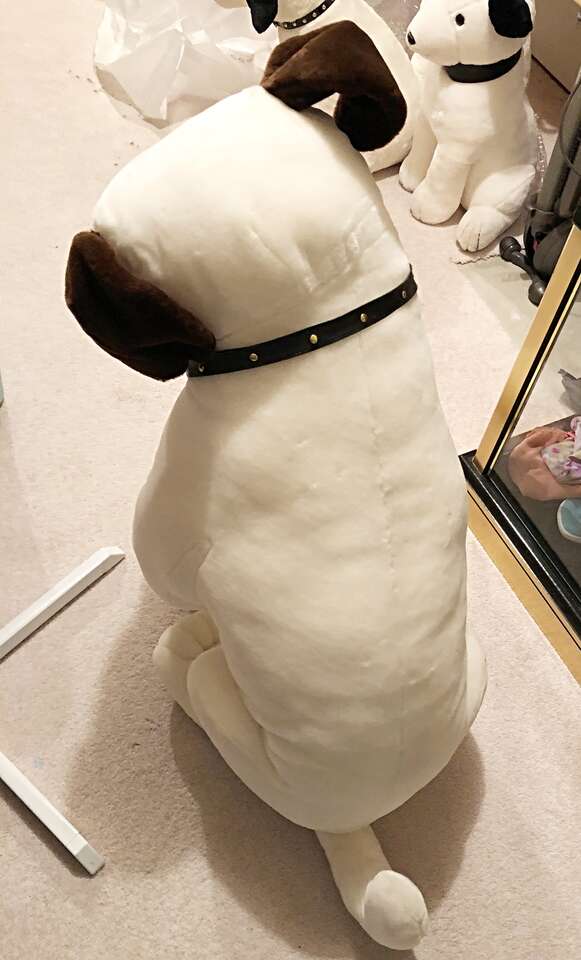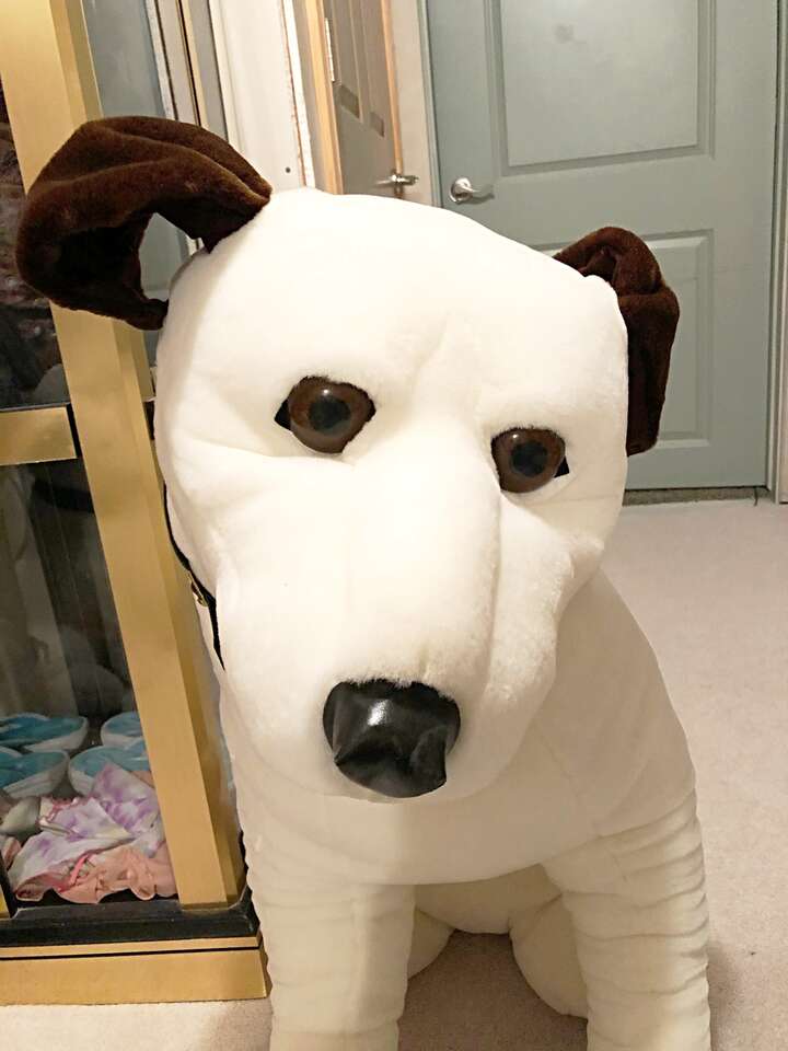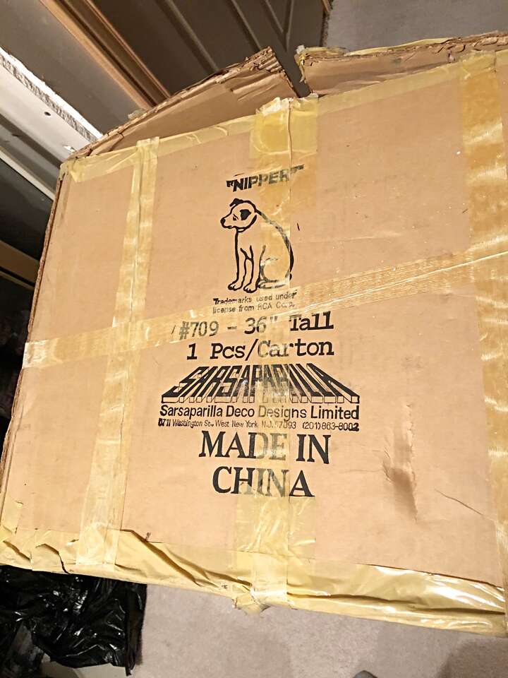 This is a very rare 36" RCA Nipper that is a stuffed version. with GLASS EYES. I've had this in my collection for several years and its time to let someone else enjoy it. I paid $500 and will let it go for $150. The original box is worth as much as the Nipper at this point. Its NEW... never displayed... Text with quesitons..