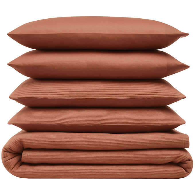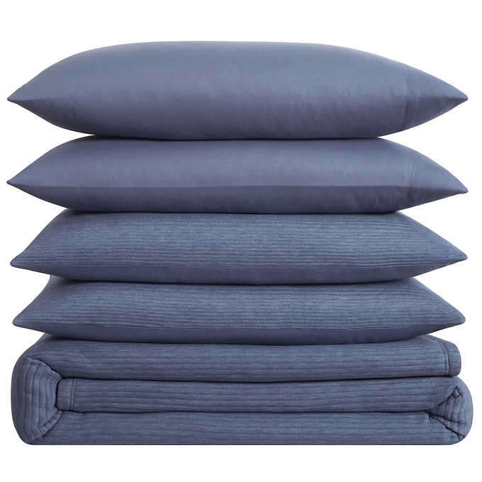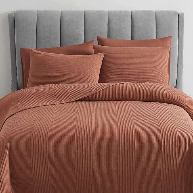 We have one of these Brooklyn Loom 5-piece Ribbed Matelassé Coverlet Sets in King size 1722801 #91589 available. This set comes in three colors: Gray, Blue. and Cooper. Colors available depend on what we have in stock at the time. These coverlet sets come to us in various conditions from New to Lightly Used. They come in or out of the original packaging.
